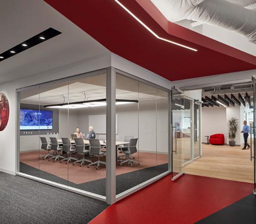 As a global leader in the development of innovative sleep and respiratory solutions, this company required a new space that is aligned with its Workplace Innovation Program, which is based on the principles of shared space, flexibility, mobility, and sustainability. The new dynamic Digital Hub workplace provides a creative environment for new product development, marketing, and co-creation with outside companies and the local institutional community. The space promotes connectivity and collaboration by providing free-address, desk sharing, and alternative work settings. The open, flexible workplace incorporates “scrum development process” areas that support cross-functional, multi-learning team members. As the hub of the office, the pantry is designed to serve as an alternative workplace for employees and visitors, and to support the company’s plan for hosting informative events for its institutional and corporate partners.