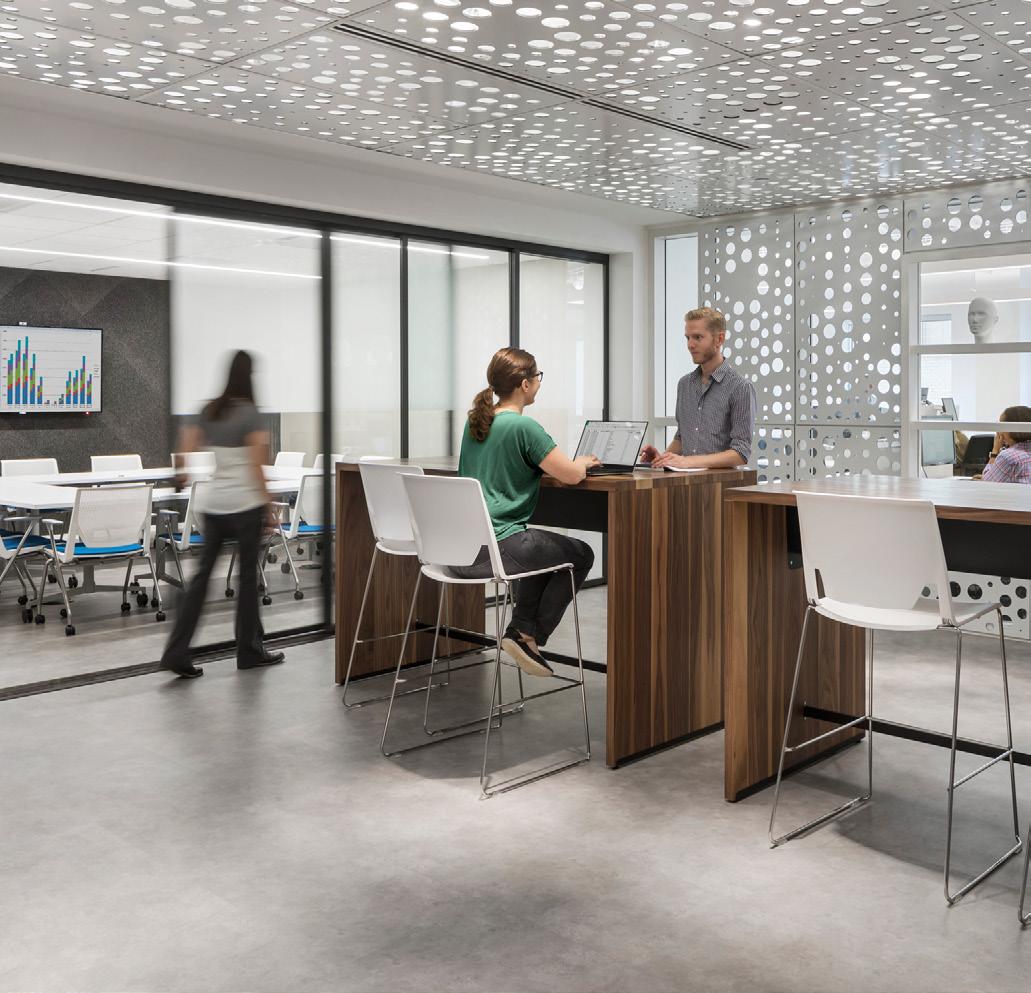 This document is the first in a series of annual workplace benchmarking reports to be produced by Perkins Eastman. The purpose of this effort is to gain a better understanding of the type and quantity of spaces that our clients need, to identify trends across industries, and—eventually—to track changes over time as we continue to build a robust internal database. Our wide-reaching portfolio of projects, spanning 14 practice areas and 18 interdisciplinary offices, gives Perkins Eastman a unique perspective across industries and regions. Leveraging these valuable internal resources will enable us to better serve our clients, supporting our mission of enhancing the user experience through human-centered, evidence-based design.