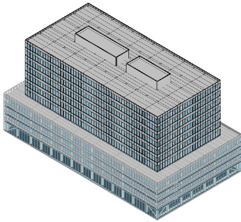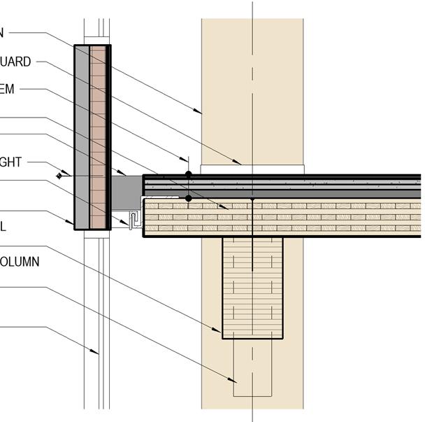 • Install curtain wall on Levels 2 - Roof (with slab-edge mineral wool)