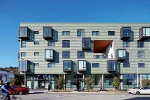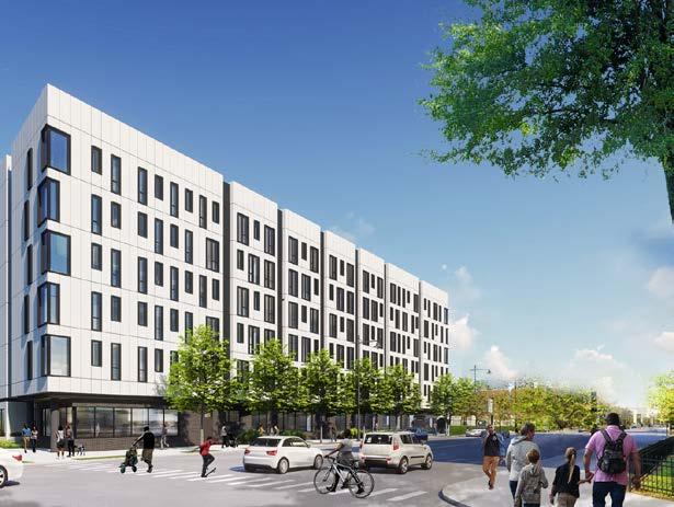 The project is located on a primary commercial corridor and is a TransitOriented Development. Several tenant amenities include a community room, business center, fitness center, indoor bike parking, on-site management office, a roof deck above the lobby, and a programmed rear courtyard.