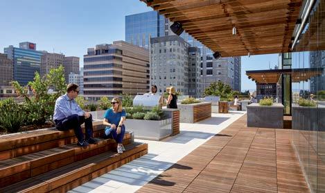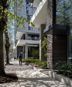 Buildings O&M activate the neighborhood with contextual design elements and public amenities, contributing to a pleasant and walkable neighborhood feel.