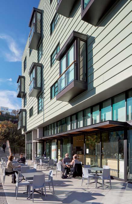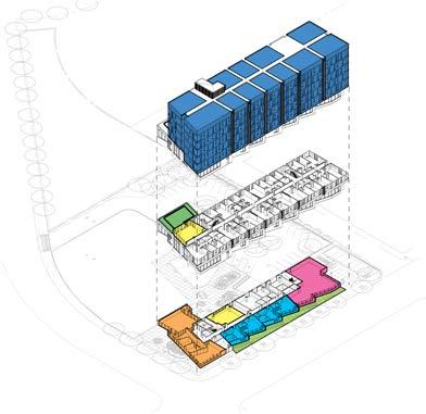 The building creates an inclusive and vibrant community of residents linked through spaces of collaboration and activity balanced with privacy and respite.