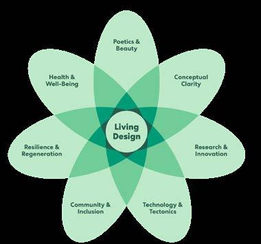 Our Living Design approach aggregates complementary social, environmental, and economic strategies, allowing us to dial up or dial down a given focus area depending on the client’s need. We carefully evaluate every project through seven design drivers: Poetics & Beauty, Conceptual Clarity, Research & Innovation, Technology & Tectonics, Community & Inclusion, Resilience & Regeneration, and Health & Well-being.