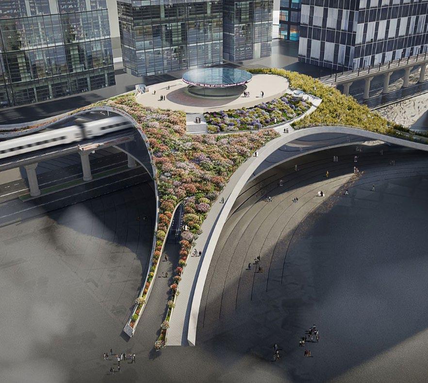 The Chronoscape project explored how to merge the best qualities of rural and urban environments. It proposed maximizing access to natural systems while preserving the density and infrastructure of the city. The design featured dynamic walking paths, cycling superhighways, and irregular terrains that created visual interest and movement. The team emphasized the restorative qualities of natural landscapes and suggested strategies for reintroducing those qualities into urban settings—through porous ground cover, plant-rich edges, and layered vistas that interrupt the monotony of concrete.
