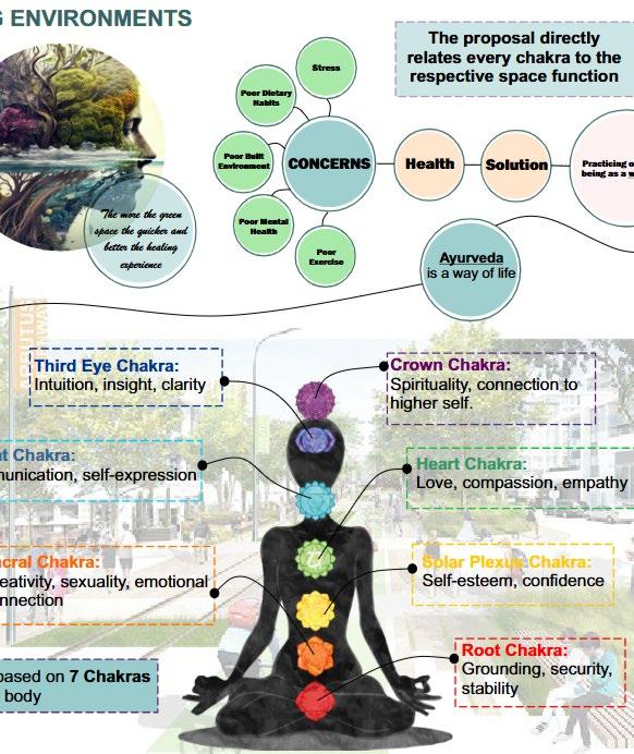 Finally, (n)ode to Life offered a poetic interpretation of outdoor programming as prescription. The project created sensory nodes tailored to specific health outcomes. For sleep enhancement, for example, the proposed node was a moon garden—a serene retreat immersed in flowing water, soft soundscapes, and gentle light. It supported circadian rhythms by reducing artificial light and technological overstimulation, creating a calming, immersive natural experience as a counterpoint to the modern pace of life.
