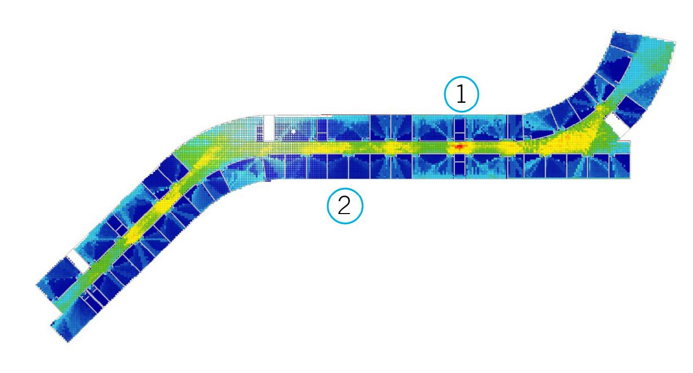 Morrow High School: Visibility Study Location: Morrow, Georgia The Morrow High School team performed a study which analyses the Visibility Area and Visibility Occlusion of each floor. Below are two studies from one of the floor plates. Studies like this help inform what the desired level of transparency should be for different spaces.