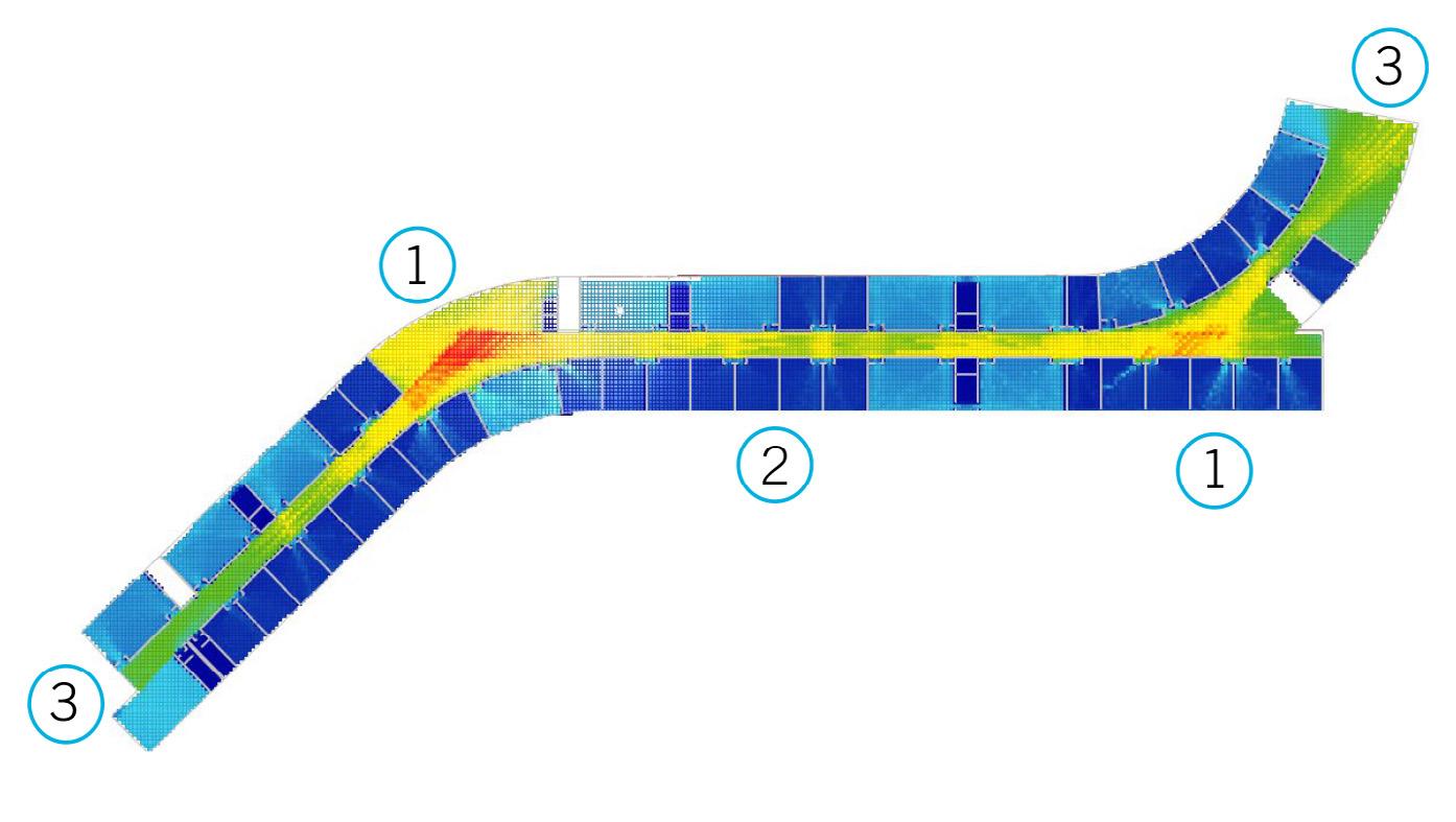 LEVEL 02 - Visibility Occlusivity • Represents obstacles and potential line of sight from the corridor • Dark blues represent blind spots from the corridor.