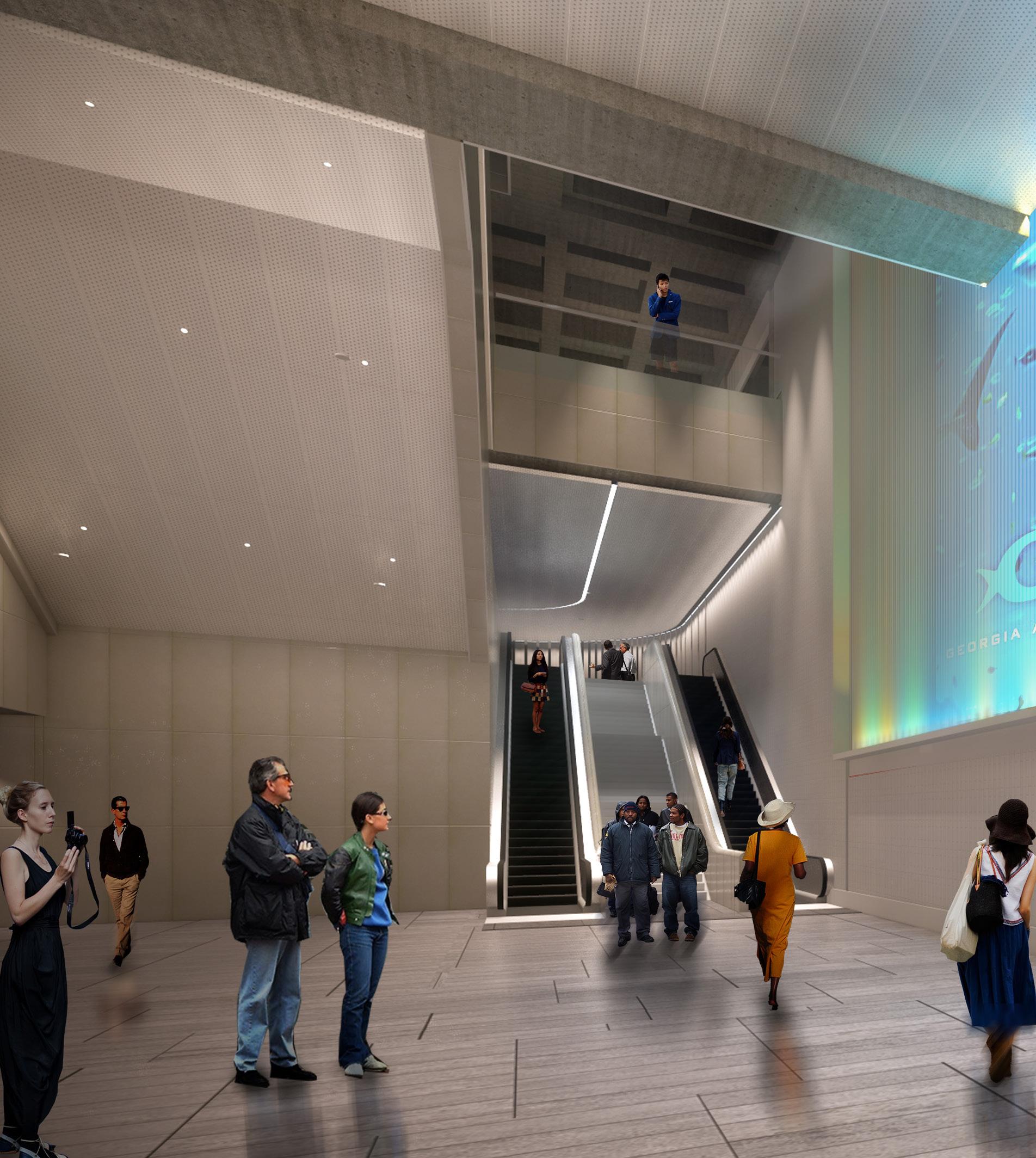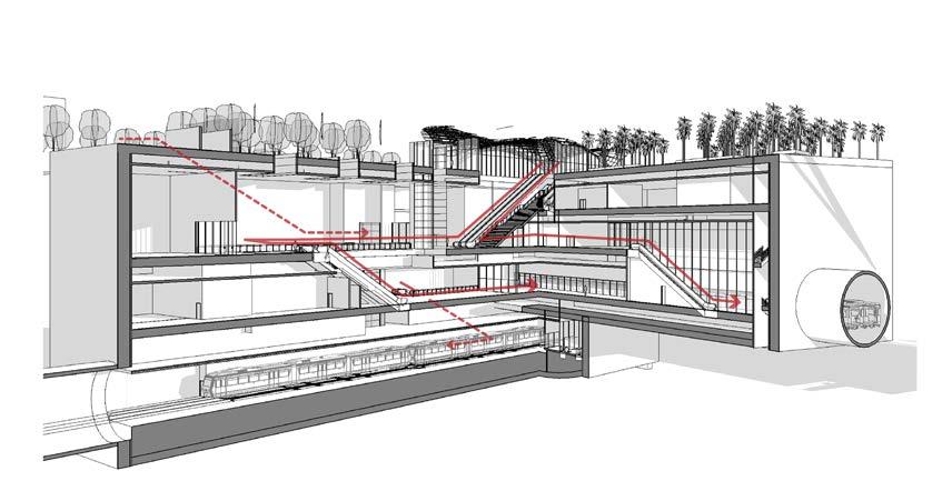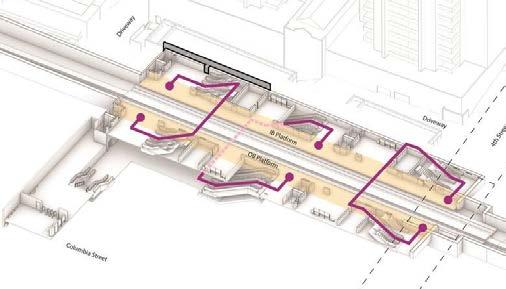 Design interventions addressed significant movement increases, new interchange pathways, noise mitigation, and drastic improvement to the customer experience at the station, including safety, accessibility, and community connectivity.