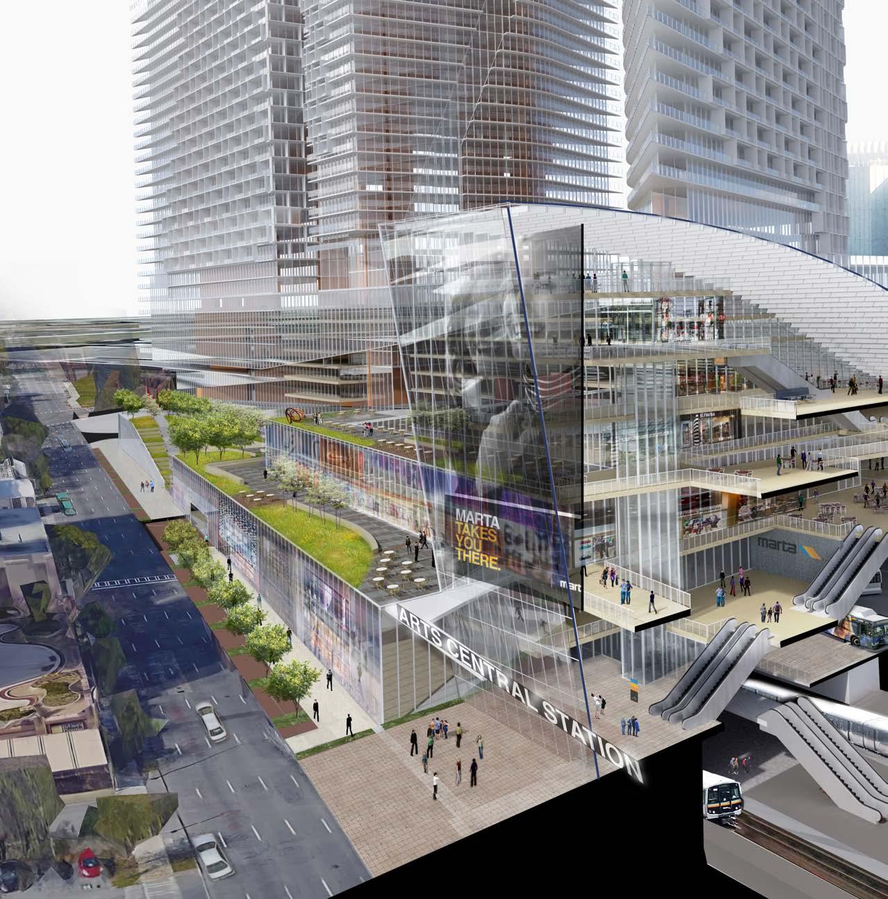 The vision for the project is a transformation of the existing MARTA Arts Center station into a central destination at the epicenter of urban living, technology, culture and green space.