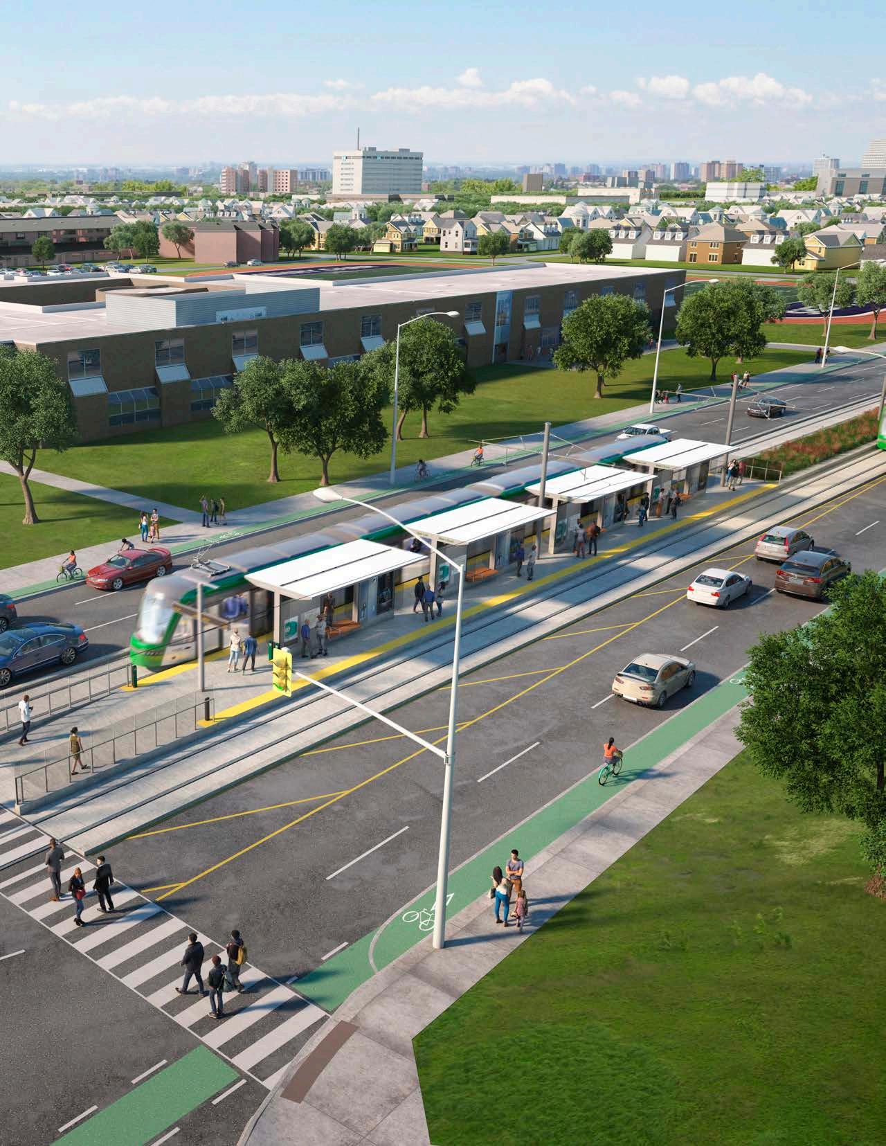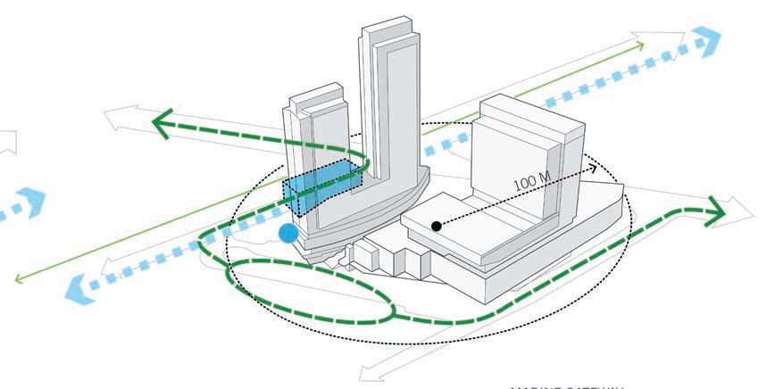 The project focuses around a pedestriandedicated ‘high street’ directly connected to public transit that offers retail, entertainment, and convenience shopping.
