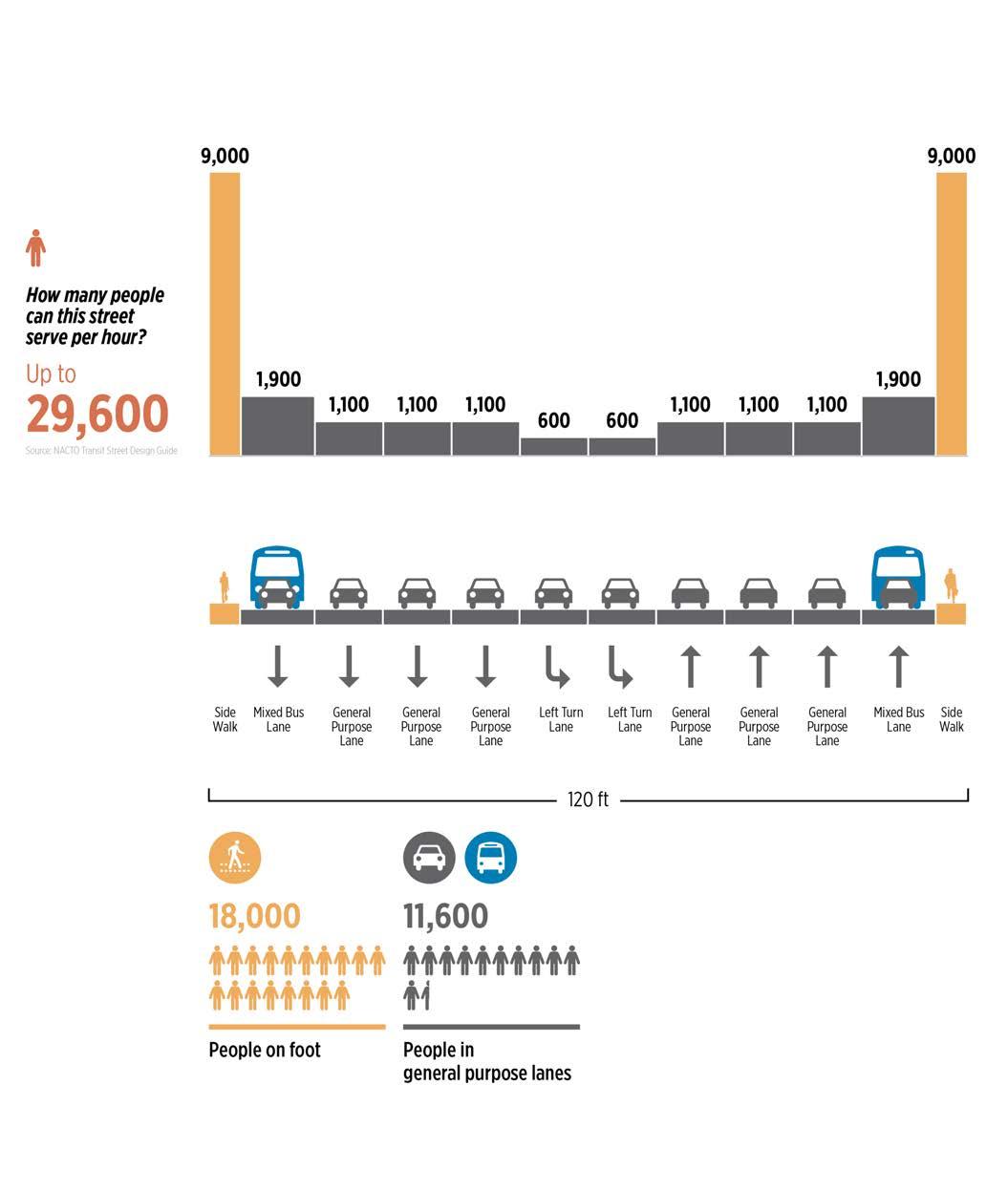 A collaboration between Perkins and Will, Nelson\Nygaard, and Lyft questioned how an existing city street, currently lacking meaningful places for people and overloaded with car traffic, could be redesigned to more efficiently move people and improve the public realm.