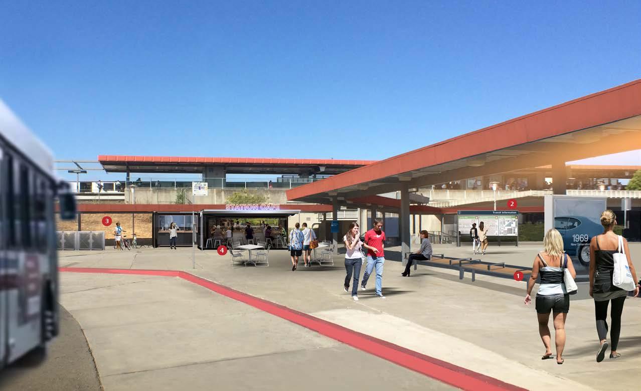 Among the design typologies explored in the report, a stand-alone transit station is transformed into a physical and digital multi-modal hub, adding value through the expansion of enhanced mobility options on site and connectivity to the city.