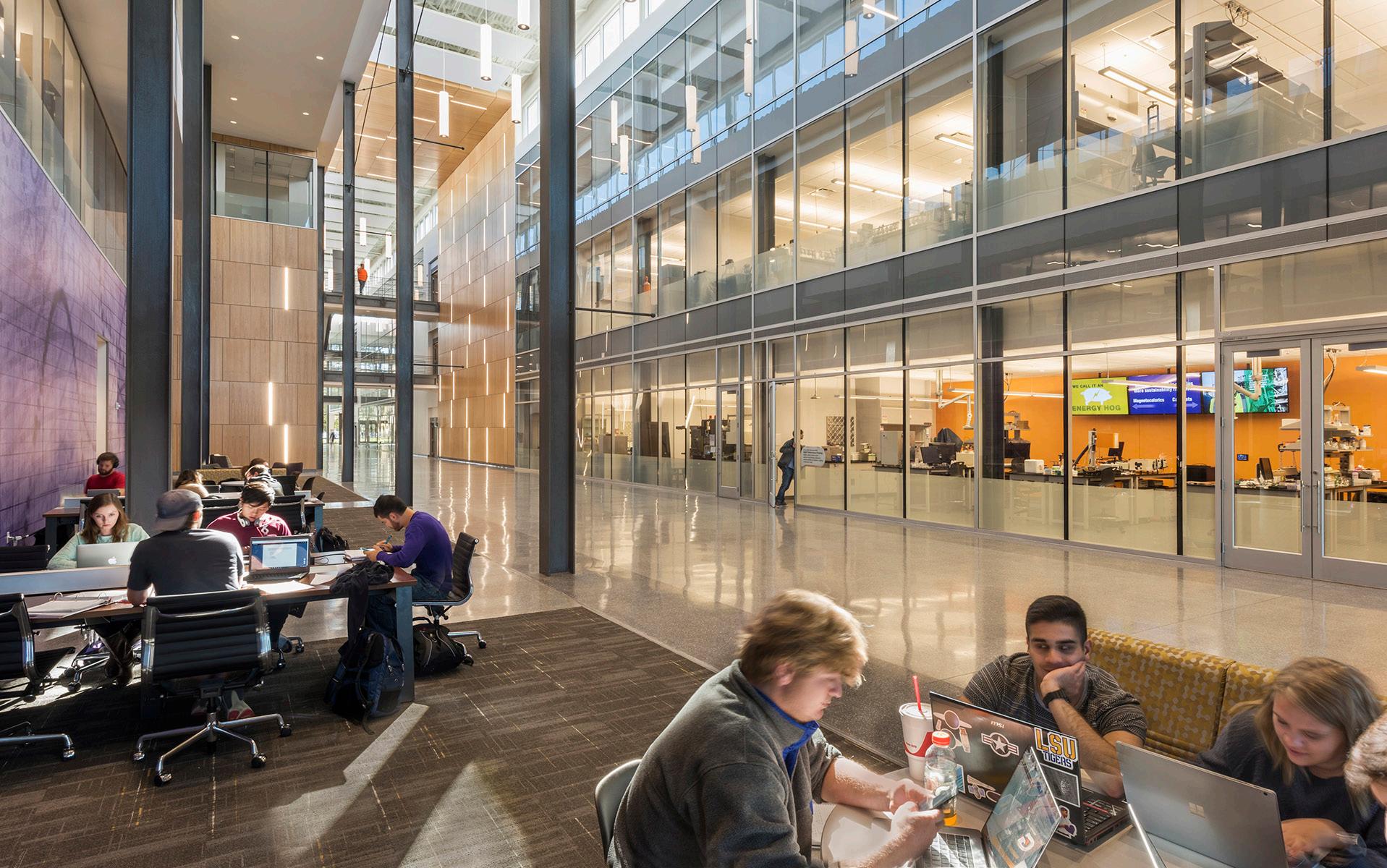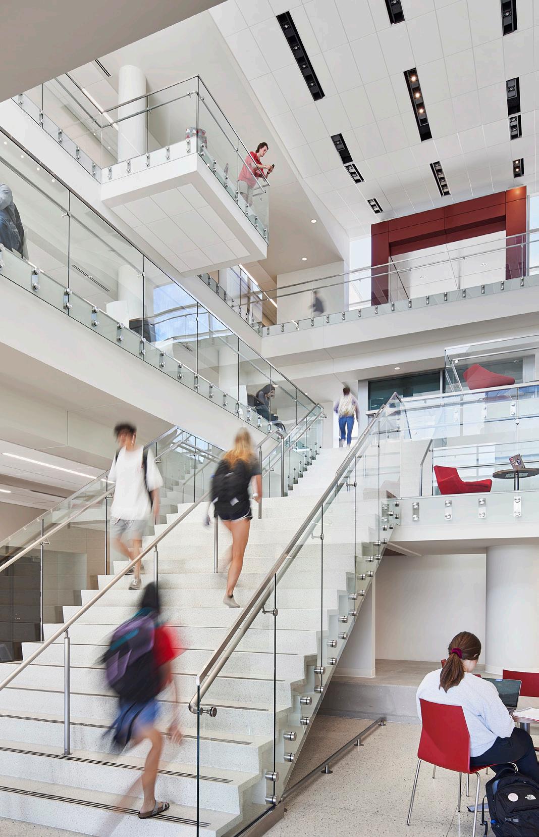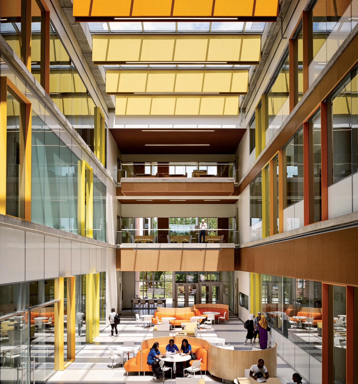 To foster communication between the engineering disciplines, vertical public spaces are carved from the existing structure, creating a visual and social connection.