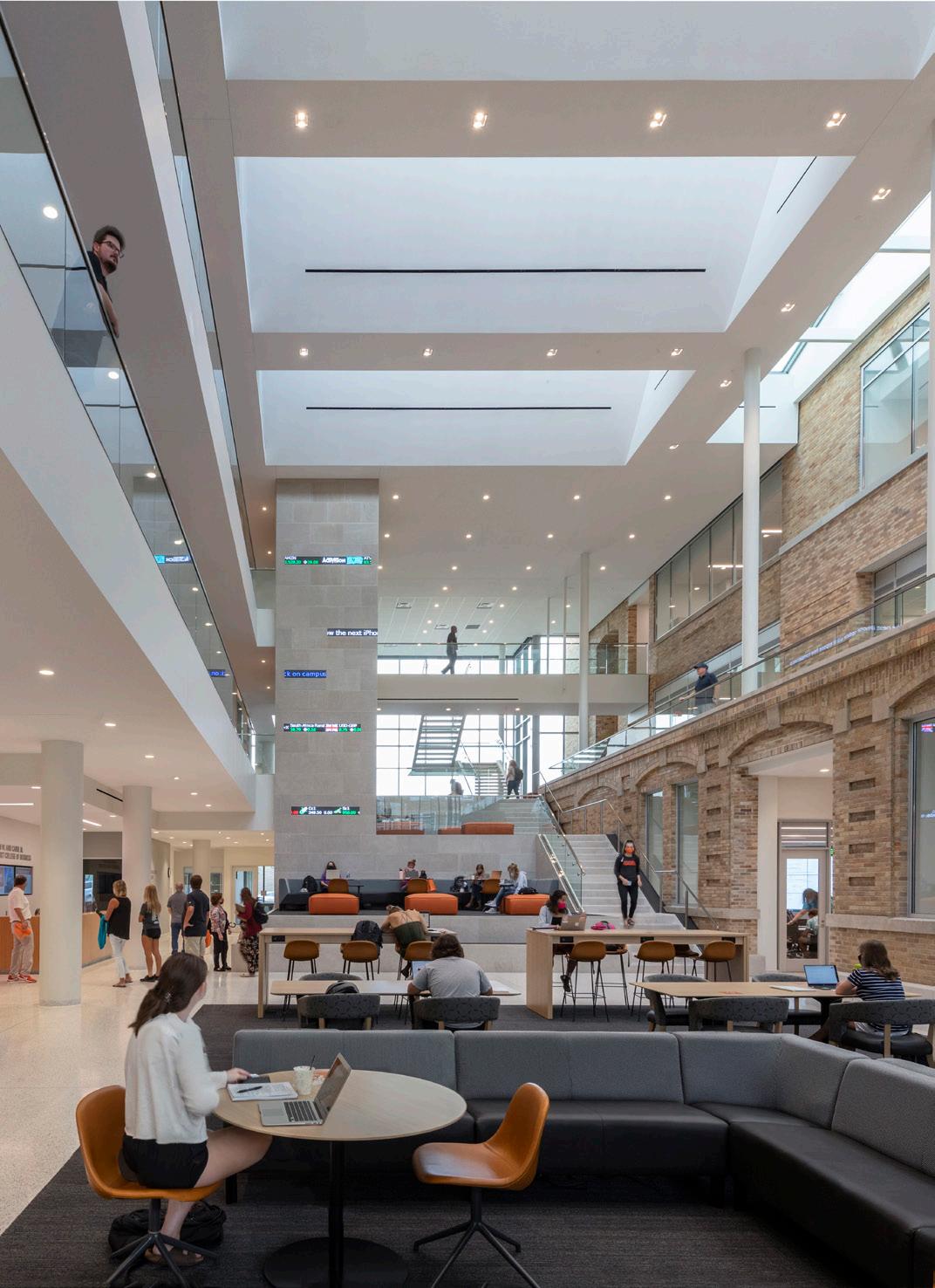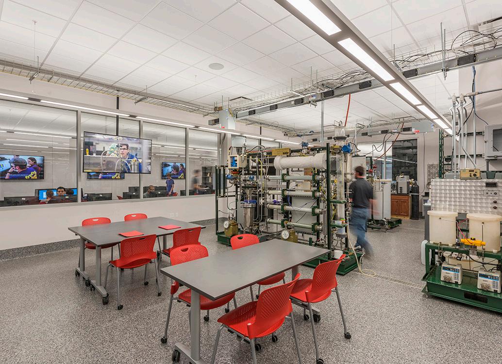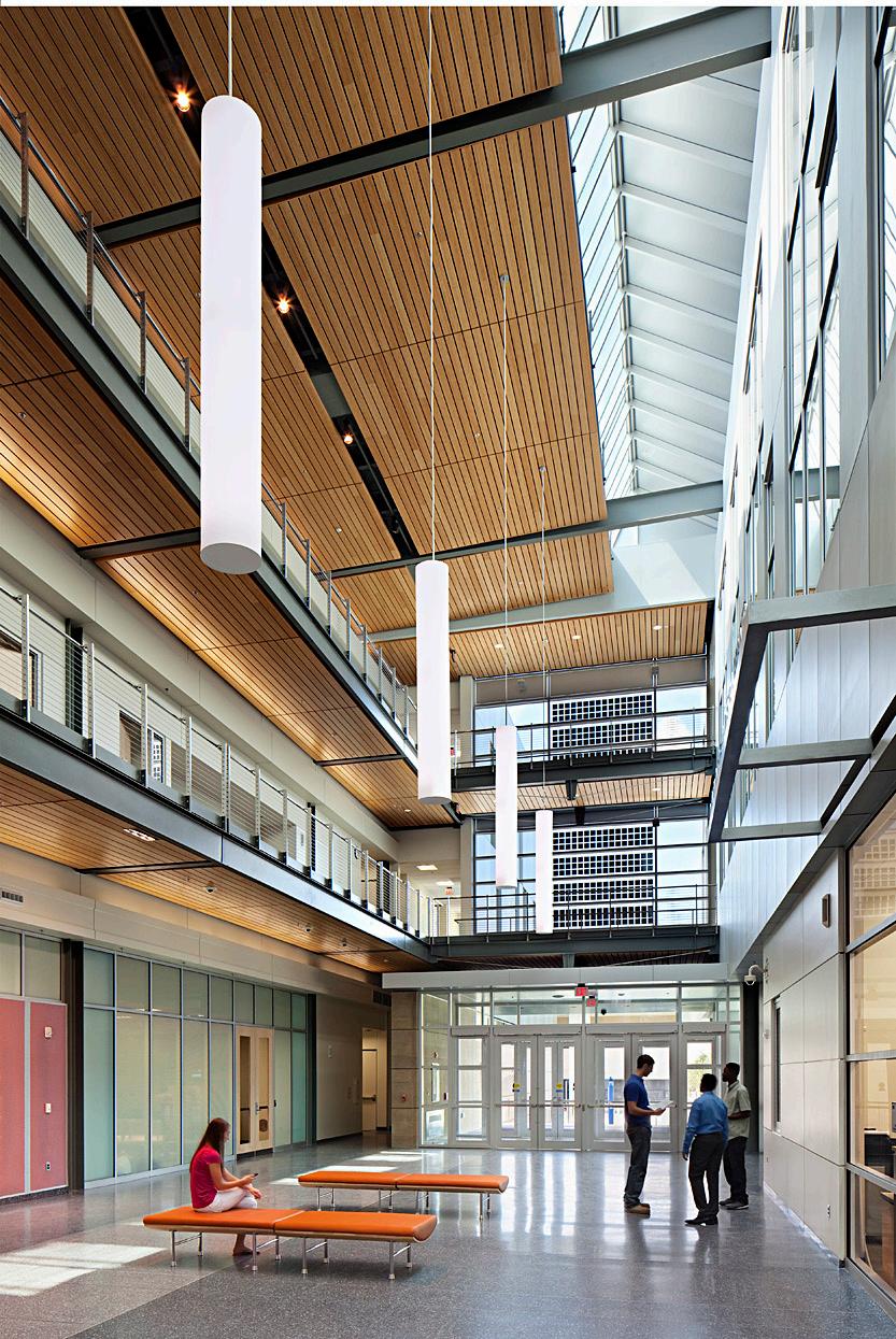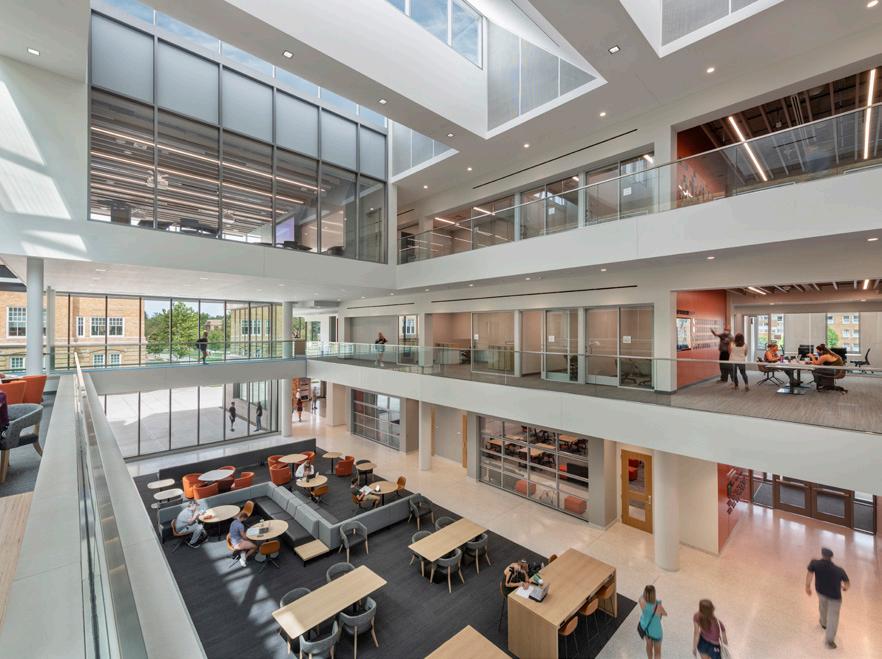 To foster communication between the engineering disciplines, vertical public spaces are carved from the existing structure, creating a visual and social connection.