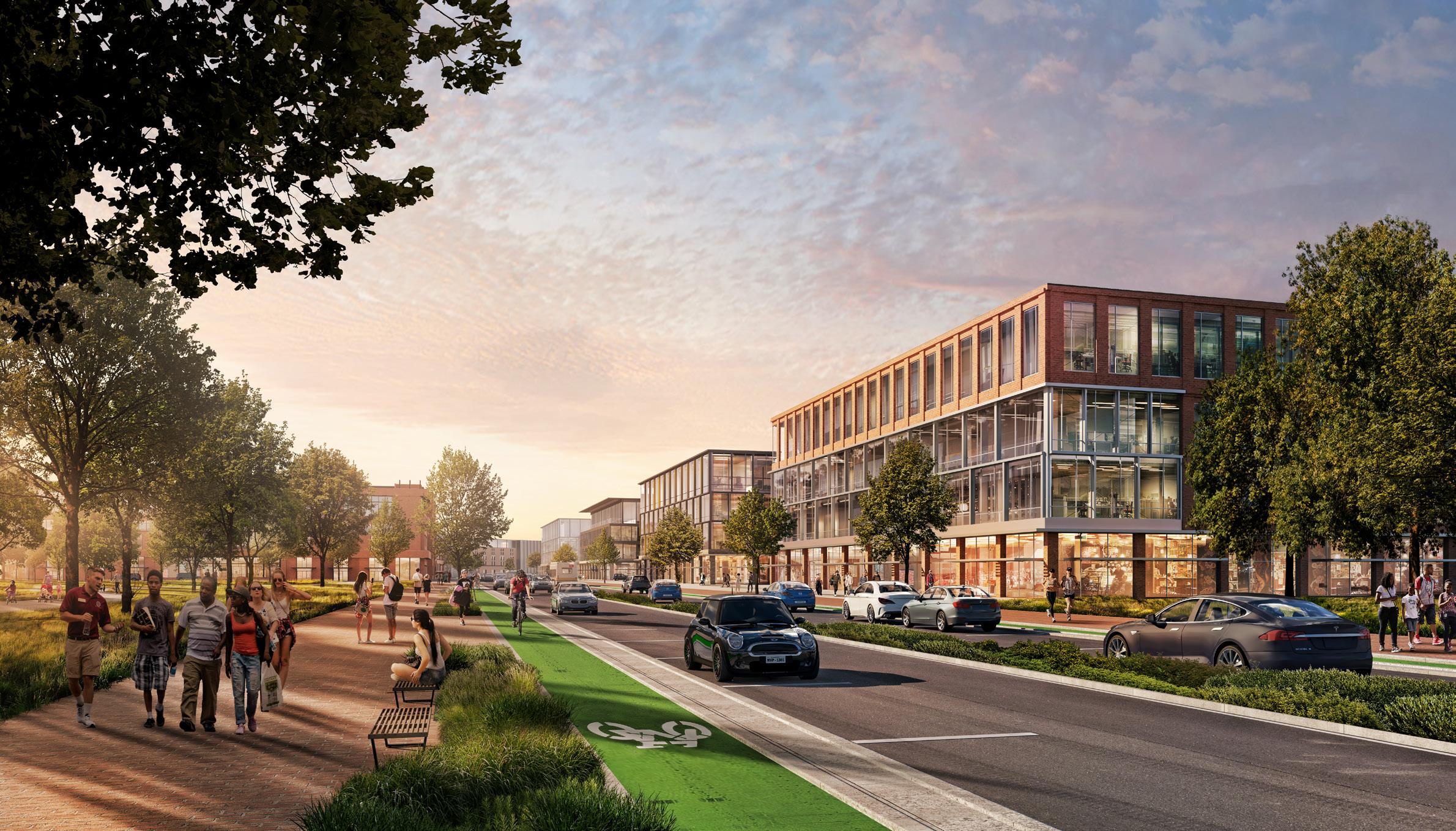 • Site infrastructure, parking, hardscape, landscape and site lighting