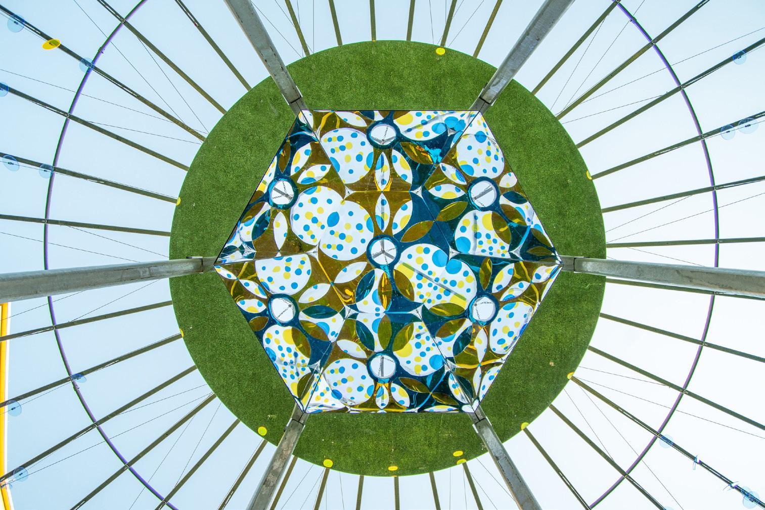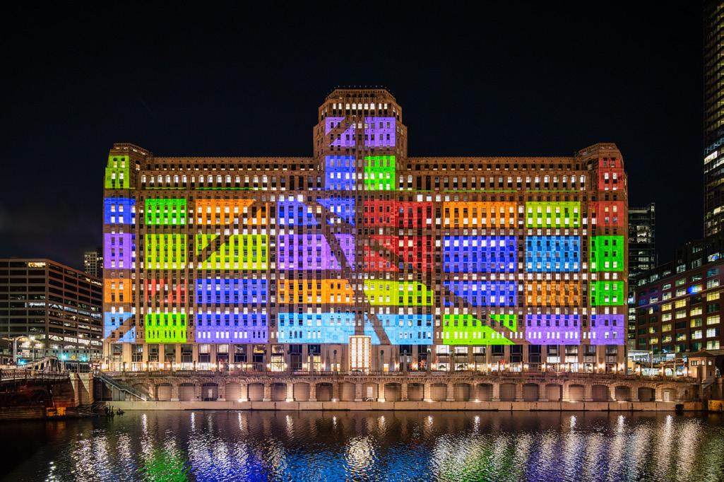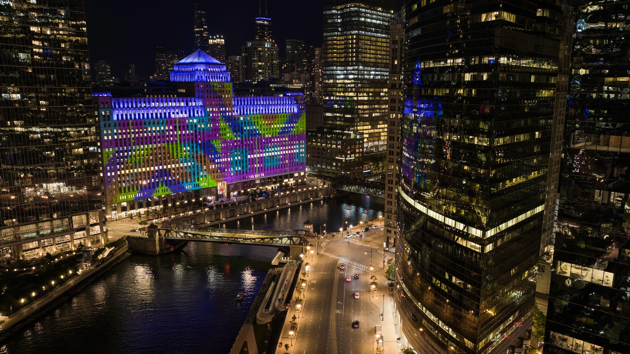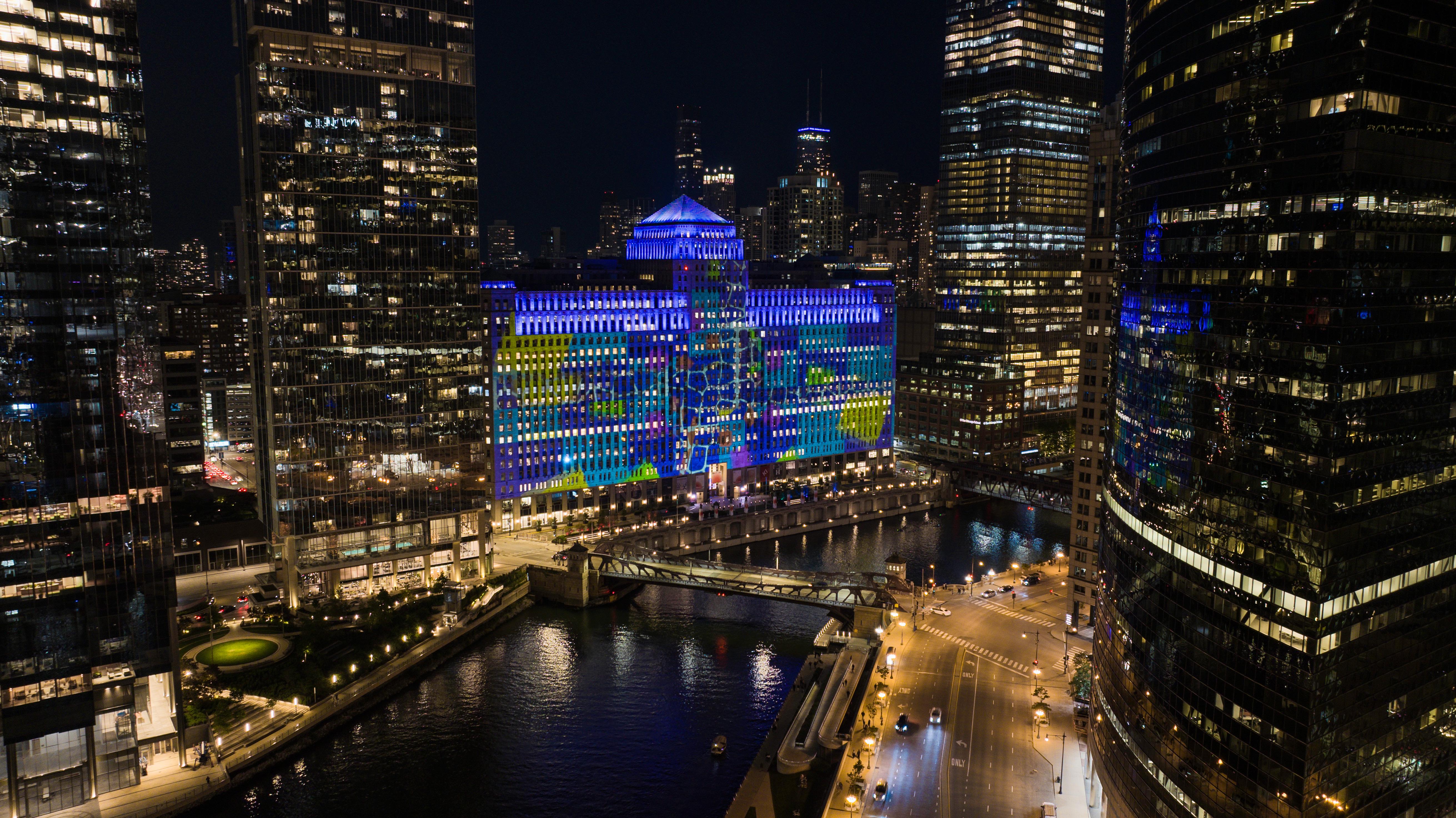 A 13’ square kinetic installation positioned at a main entry point serves as an ever-changing moment of history, messaging, and culture.