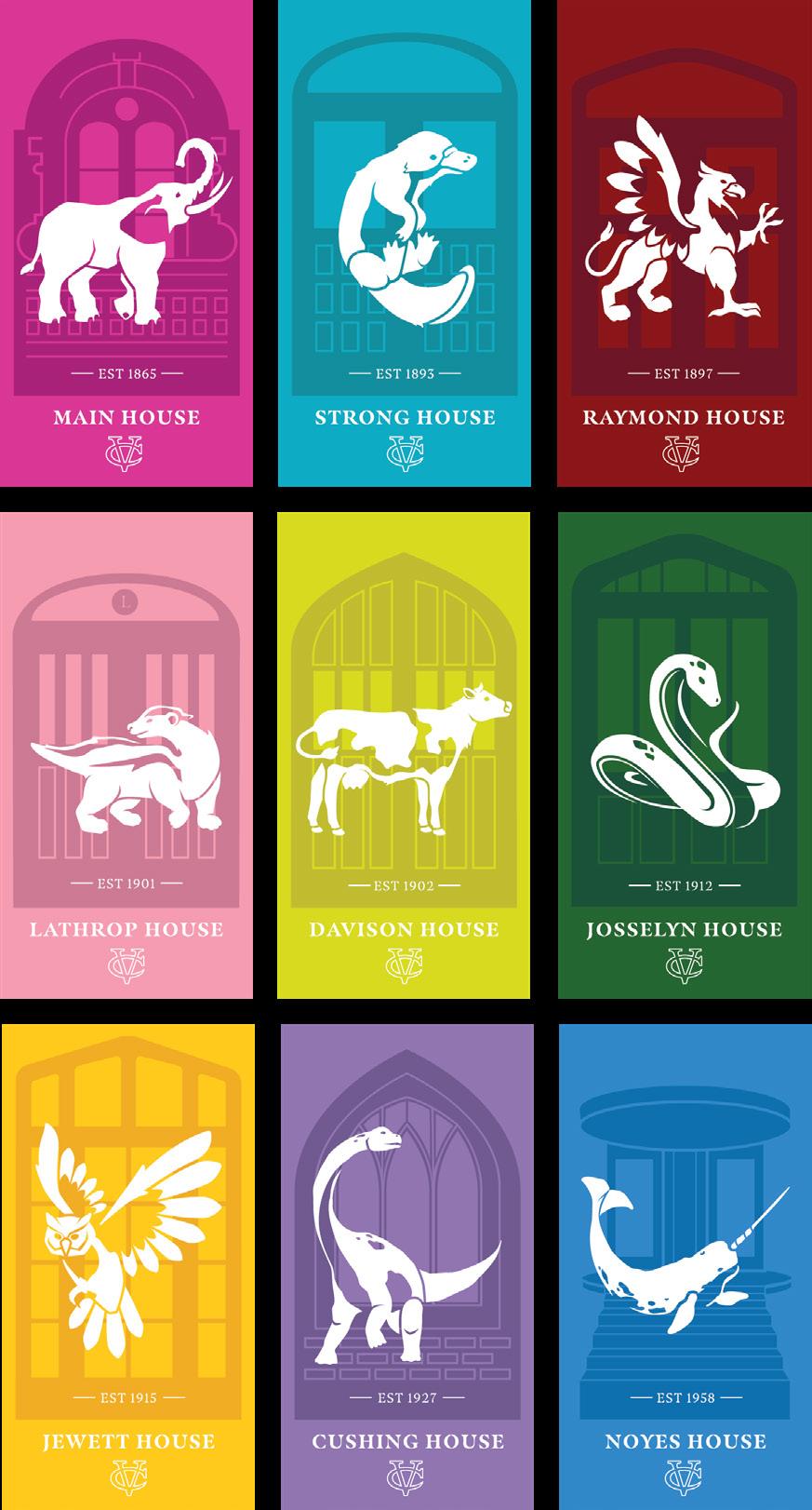 Vassar College’s branding update kept the beloved house mascots and colors while improving consistency, clarity, and visual cohesion. Architectural icons, drawn from each house’s exterior, strengthen the connection between identity and place as the college formally adopts these longstanding traditions into its brand.