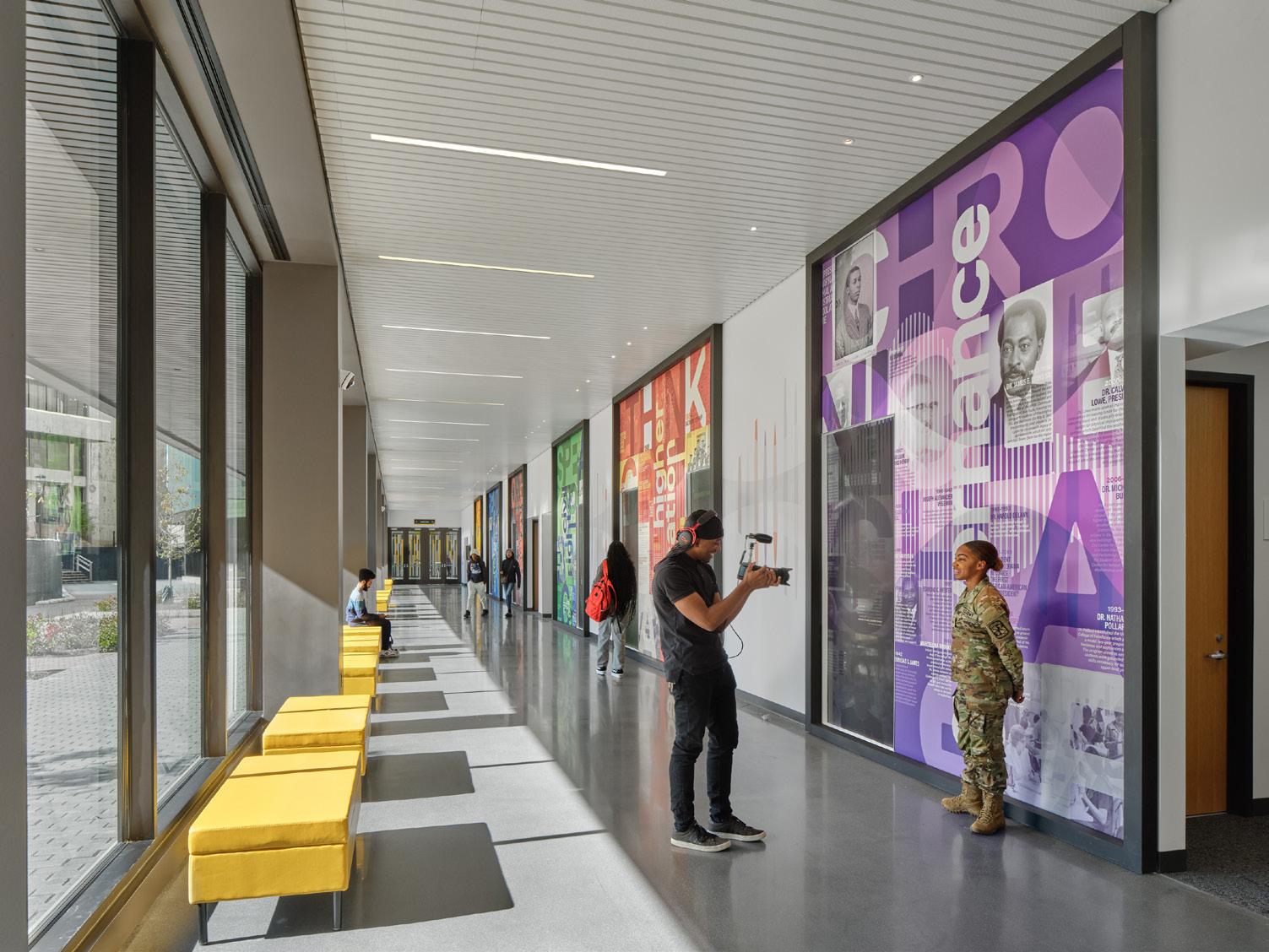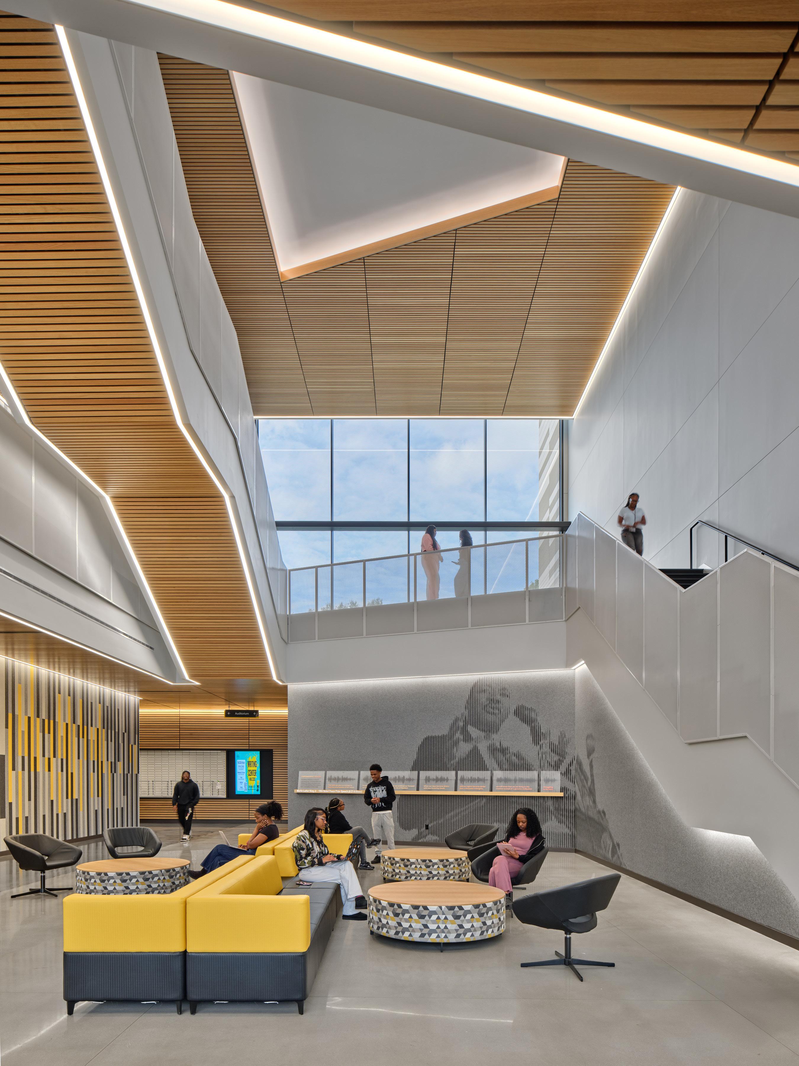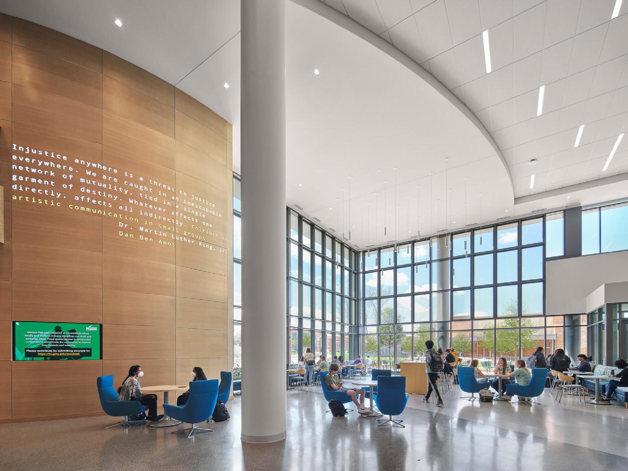 The new Martin Luther King Jr. Communication Arts and Humanities Building at Bowie State creates a cultural stage where people connect, exchange, and grow. Inspired by Dr. King’s legacy, the space empowers student expression and honors Black voices through a bold commitment to justice, identity, and education.