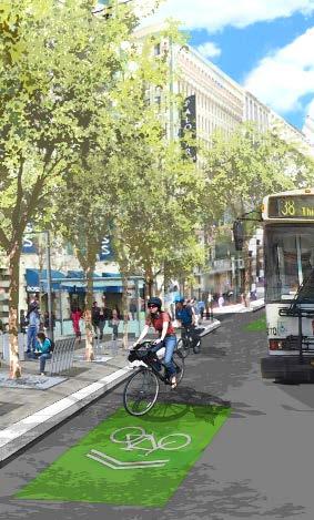 Wider sidewalks. Dedicated bike and bus lanes. Ten traffic lanes become an avenue toward sustainability.
