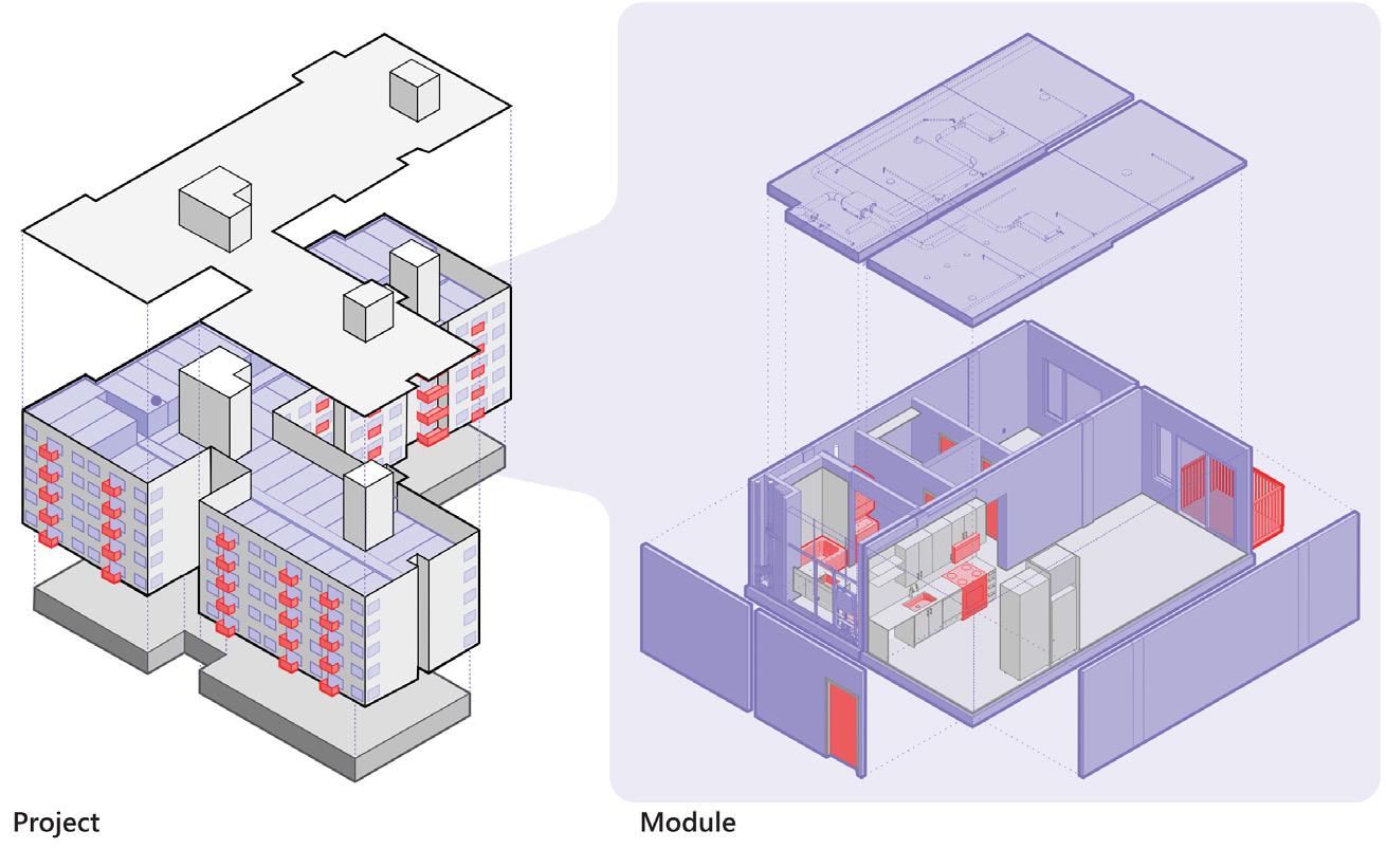 Volumetric modular manufacturing is characterized by repetition and naturally suits projects that require high-efficiency arrangements, such as residential buildings, hotels, and student housing. The size of residential units is particularly well suited for the size constraints of modules, with room demising walls typically formed by module walls. It facilitates faster deployment of sustainable and affordable homes, addressing the housing demand while also reducing the environmental impact typically associated with traditional construction. This approach aligns with the pressing need to address the global housing crisis, reduce carbon emissions, and promote sustainable and resilient housing solutions in our communities.