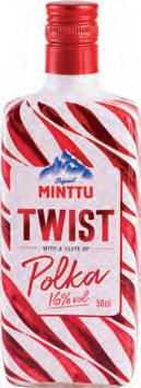 Endnu et frisk pust til Twist-sortimentet Pebermyntesmagen kendes fra de klassiske rød/hvide slikstokke der pynter på juletræet Nu er det tid til at nyde den klassiske pebermyntesmag i et friskt likørshot Minttu bør nydes iskold og serveres i et shotglas