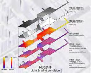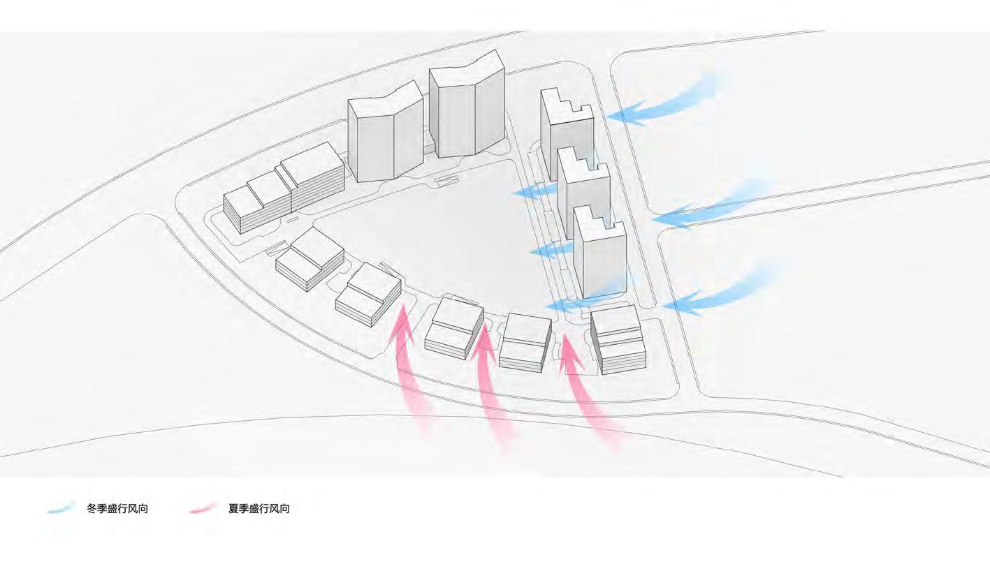 The project is a multi-functional software industrial park. The overall planning includes R&D office, apartment communities, factories, staff canteens, etc. There are more than 5,000 employees and their families working and living here. Therefore, together with creating a relaxed, pleasant and efficient working environment for employees, the design also needs to consider the activity demands of employees' families including elderly and children, so as to drive the vitality of the park.Team Member, CD 1 10 9 7 3 4 6 613 13 1311 13 8 8 5 5 Prevailing wind in Winter Less than 1 hours hours hours hours hours More than Hours hours hours Sunlight Conditions
