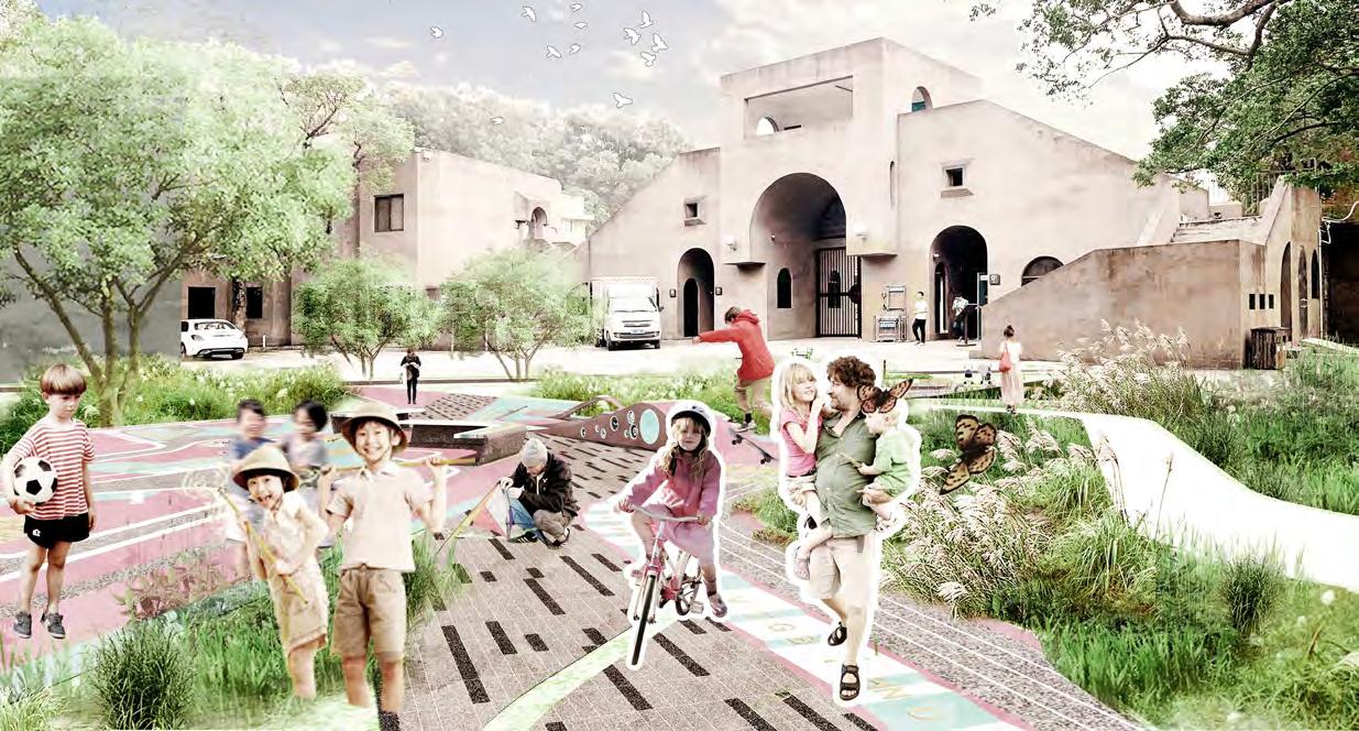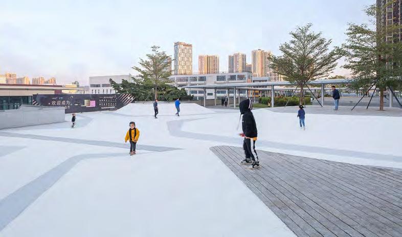 Exhibition&Shopping Route Children's Playing Route Escalator Escalator LONGCHENG Commercial Street Shenzhen, China November, 2020 21500 ㎡ Team Member, CD+SD Location: Date: Area: Responsibility: The site is a very narrow strip connecting the Vanke Mall to the West and Longgang Cultural Centre to the east. As Landscape Architect, we didn’t view this complicated site into pieces, but as a whole character. It combines the functions of transportation, cultural, retail and urban accessibility. On the 1F street, we designed circular lightings, planting and paving to emphasize the threshold plazas. We have protected a hundred years old banyan tree, and other plantings are carefully selected to mark the spaces and celebrate the architecture.
