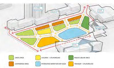 VANKE Central Plaza Area: Responsibility: 10500 ㎡ Team Member, DD Location: Date: Zhenzghou, China July, 2015Alfresco Dining 1 9 2 Starry Walkway Waterscape 3 4 Events Lawn Art Works 5 6 Commercial Street Deck Chair 7 8 Climbing Wall Zigzag Bench 9 10 X-Sports Court Show Flat 11 12 Dry Fountain Reflecting Pool 13 14 Clubhouse Entry 1 6 1 1 13 14 7 5 2 2 2 2 3 3 4 4 4 4 10 11 6 8 8 8 8 6 12 6 Circulations West-East Pedestrian Flow Landforming Water Features SPACE DEFINITION Programming Indirect Paths In this plaza, we design a wide range of program for different age group, including Dry Fountain, Mist Garden, the Runway, Children’ s Climbing wall, Sunken Playground and Sunken Skating Ring. These independent programs and the surrounding seating areas encourage the see-and-to-be-seen interaction. The environmental friendly resin-bound star promenade connects all these program and lead people to the future diagonal commercial street.
