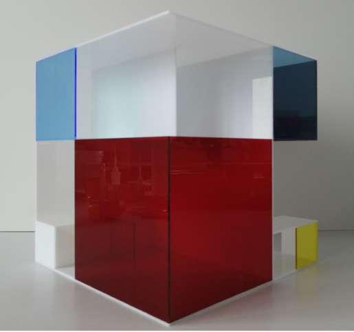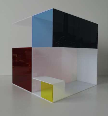 Concept: This square model is only made by different colors acrylic board to represent of different color square in this paint in the left, Also, I used two sides to make the paint look like this by using different height levels of the board.