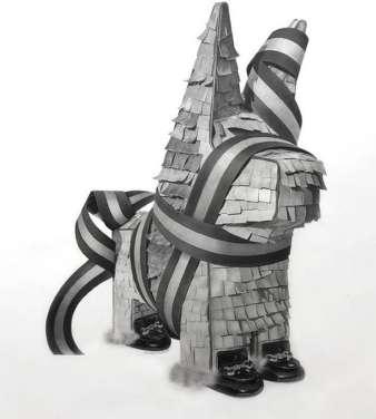I also used my model and the idea of a pinata as the starting point. I used the pinata as a complete building and used the artificial destruction of the first level in the later stage to express the waste products of urban buildings. I also used the materials scattered throughout the pinata to create my existing model, using cement to gesso and various paint and water ratios to give the pinata a concept of time.