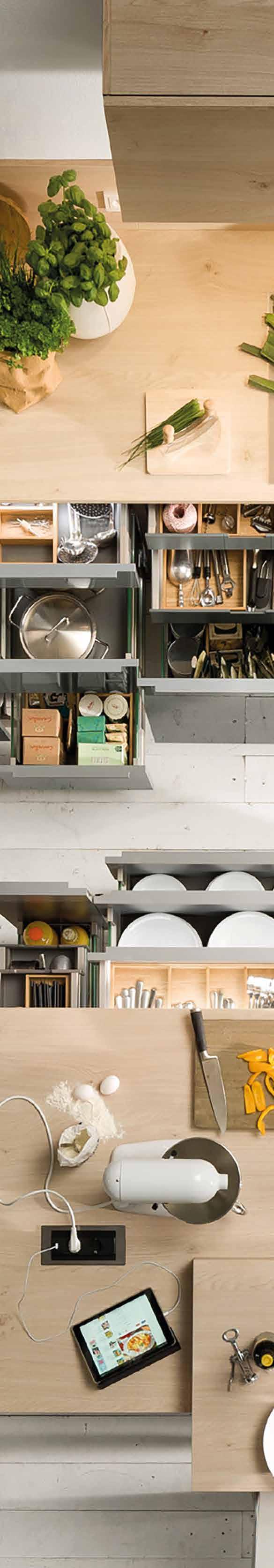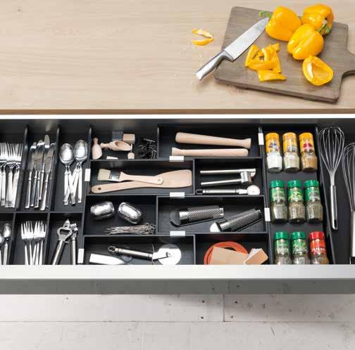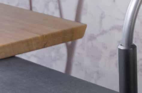 verstaut werden und belegen somit nicht die Arbeitsfläche. Folglich bleibt viel mehr Platz zum Schneiden und Schälen von Fisch, Fleisch oder Gemüse.