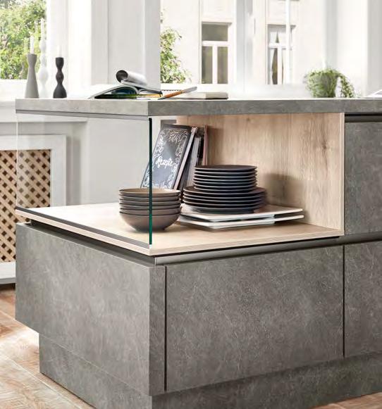Catches everyone’s eye and showcases favourite pieces in a particularly visually pleasing way: our modern interpretation of a glass cabinet has been created using a transparent, light island end unit with a glass upright panel. Simply beautiful! 648