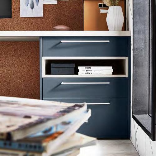 Behind the flap doors you will find storage possibilities for small kitchen appliances, cutting boards, your kitchen knives and much more. The units and open shelf units are available in all carcase colours.