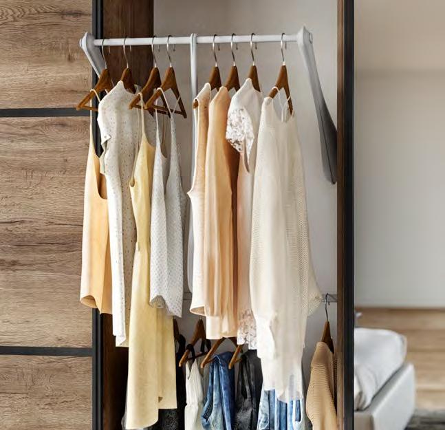 Lust auf eine moderne Behaglichkeit? Der Wandschrank mit Schiebetüren punktet mit einer Innenbeleuchtung, deren Licht von den Glasböden reflektiert wird. Mehr Ausstrahlung garantiert.