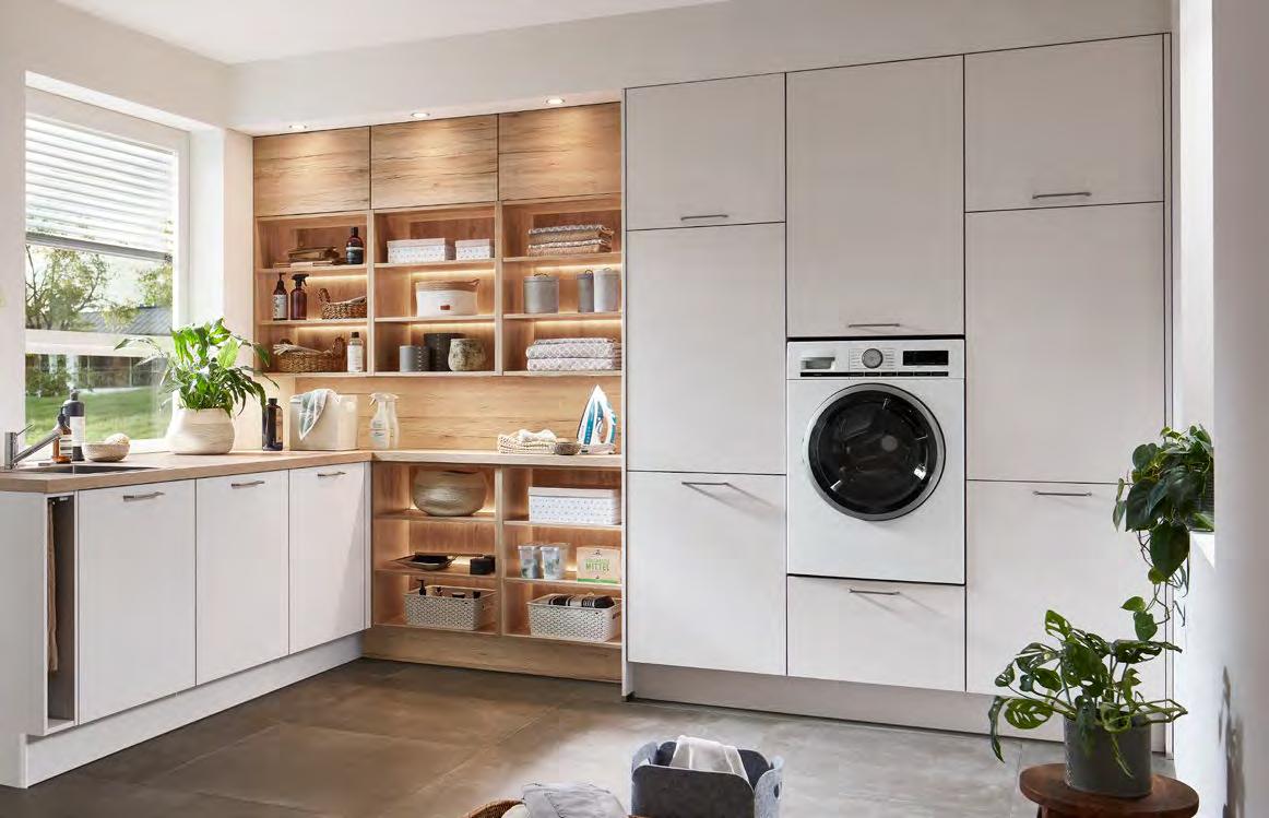 Fronten, die mit dem LINE N-Logo versehen sind, sind auch als grifflose Planungen lieferbar. Fronts marked with the LINE N logo are also available as handleless designs.