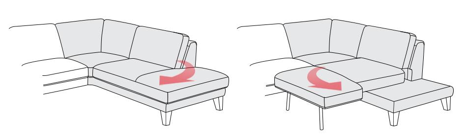Das Element E1ABL/R Drehbar (6011UD/6013UD) kann mit Typen mit Sitztiefe 56 cm wie auch 59 cm kombiniert werden.
