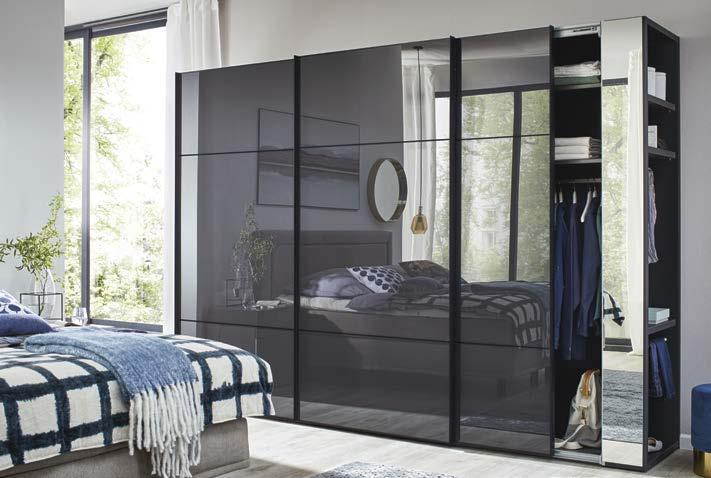 3-türig, Front Basaltglas glänzend, Korpus basaltfarben, Korpus innen Leinenoptik