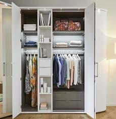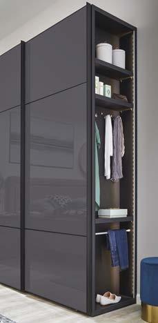 Passt sich ganz Deinen Wünschen an, denn mit dem multifunktionalen Schranksystem Global Libro 100 stehen Dir alle Möglichkeiten offen. Mit einer Vielzahl von Schrankelementen in variablen Höhen und Breiten, mit Regalteilen, Schubkästen, Eckelementen, Abschlussschränken –abgeschrägt oder abgerundet – ist eine individuelle Planung mit maßgenauem Einbau möglich. Ob begehbarer Kleiderschrank, Nischen- und Dachausbauten oder Türüberbau – mit Global Libro 100 ist vieles realisierbar. Für die perfekte Stauraum-Organisation wird das System mit einer umfangreichen Innenausstattung abgerundet. Auch optisch hat Global Libro 100 einiges zu bieten: Holznachbildungen, HochglanzLacktöne, Glas- und Spiegelfronten, Kombinationen aus Dreh- und Falttüren. Noch Wünsche? Dann hätten wir noch das passende Kommo denprogramm Global Libro 700 für Dich.