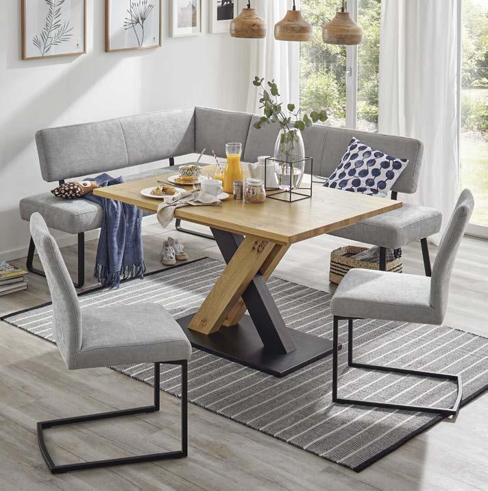 Aus dem Speisezimmerprogramm Global dinner: 1 Esstisch 4093, Tischplatte Balkeneiche massiv, strukturgehobelt mit Vintageeffekt, Metallgestell schwarz mit Inlay Eiche massiv, BHT ca. 180x76x100 cm, 1098.-*, 2 Stuhl 6131 in Stoff Mikrofaser grey, 100% Polyester, Kufengestell Eisen schwarz, BHT ca. 48x89x58 cm, je 249.-*, 3 Stuhl mit Armlehnen 6132 in Stoff Mikrofaser grey, 100% Polyester, Kufengestell Eisen schwarz, BHT ca. 58x89x58 cm, je 298.-* Global dinner Global dinner Stuhl je 249.-* 2 Global dinner Stuhl mit Armlehnen 3 Global dinner Esstisch Balkeneiche massiv 1098.-* 1 *Alle Preise sind Abholpreise in € inkl. MwSt.; ohne Lieferung und Montage; ohne Deko. Preise und Produkte sind gültig bis 31.01.2023. Die aktuellen Preise findest Du unter www.global-moebel.de auf der jeweiligen Modellseite oder durch Scannen des Codes.24 221070-024-A4C 221070-025-A4C 25