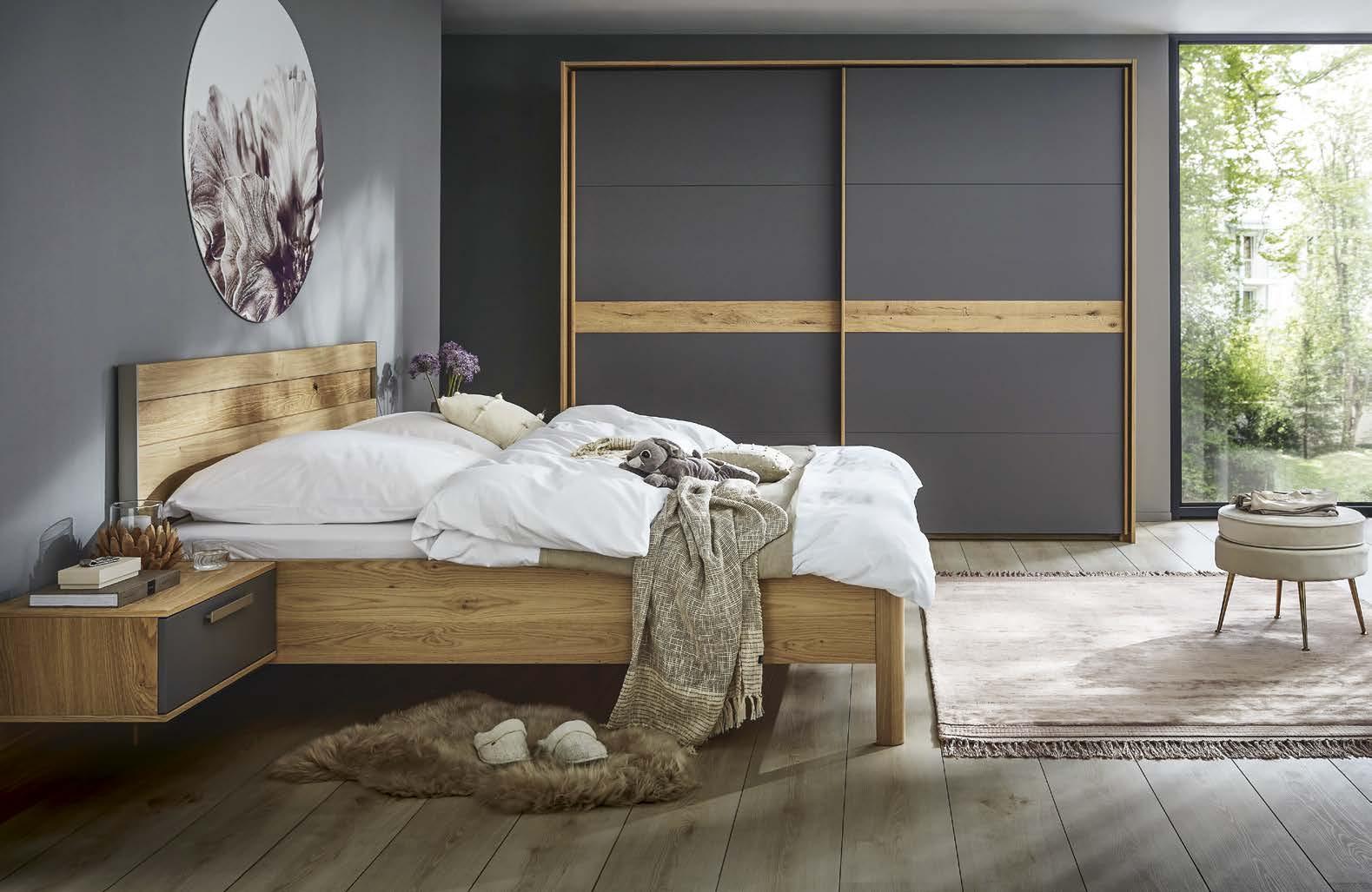 Aus dem Schlafzimmerprogramm Global Lenoso Korpus außen Eiche Nachbildung, Fronten Eiche massiv, Glas champagnerfarben, Griffe Metall schieferfarben, Korpus innen Erle Nachbildung: 1 Drehtürenschrank, 6-türig, inklusive Passepartoutrahmen sowie 2 Böden und 1 Kleiderstange je Korpuselement, BHT ca. 306x220x65 cm, 2098.-*, 2 Nachtkonsole mit Aufsatzpaneel und Rauchglasablage, 2 Schubkästen, BHT ca. 60x68x43 cm, 3 Bettanlage, Polsterkopfteil Kunstleder anthrazit, 100% Polyurethan, Bettseiten Eiche massiv, Metallkufe schieferfarben, Liegefläche ca. 180x200 cm, Einlegetiefe für Lattenrost 4-fach verstellbar, Stellfläche BHT ca. 189x97x208 cm, ohne Lattenroste, Matratzen, Bettwaren und Deko, 1398.-* Wenn Du zwar eine 50-Stunden-Woche hast, aber trotzdem ein Naturliebhaber bist — Global Lenoso. Hallo, Global Lenoso mein Name. ↘ Global Lenoso Drehtürenschrank mit Passepartoutrahmen 2098.-* 1 Global Lenoso Nachtkonsole 2 Global Lenoso Bettanlage Eiche massiv ohne Lattenroste, Matratzen, Bettwaren und Deko 1398.-* 3 Global Lenoso ** Deine 5-Jahres-Möbelgarantie (EMV-Möbelgarantie) erhältst Du durch eine 3-jährige Anschluss-Garantie, die lückenlos an Deine gesetzliche 2-jährige Gewährleistung anschließt. Art und Umfang dieser Garantie gemäß Garantiebedingungen unter www.global-moebel.de/Garantie. *Alle Preise sind Abholpreise in € inkl. MwSt.; ohne Lieferung und Montage; ohne Deko. Preise und Produkte sind gültig bis 31.01.2023. Die aktuellen Preise findest Du unter www.global-moebel.de auf der jeweiligen Modellseite oder durch Scannen des Codes.136 221070-136-A4C 221070-137-A4C 137