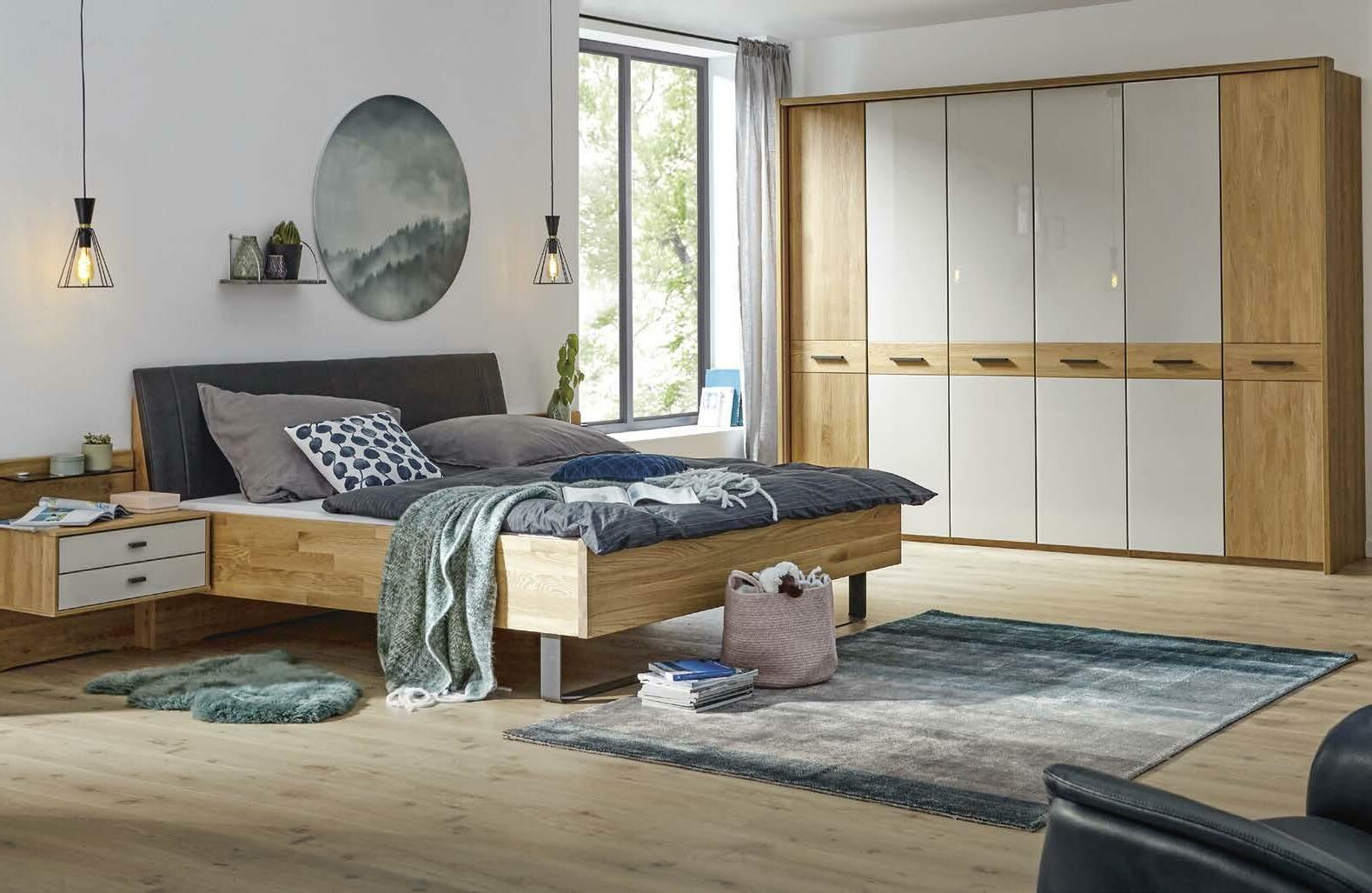 Aus dem Schlafzimmerprogramm Global Lenoso, Korpus außen Eiche Nachbildung, Fronten Eiche massiv, Glas champagnerfarben, Griffe Metall schieferfarben, Korpus innen Erle Nachbildung: 1 Drehtürenschrank, 4-türig, inklusive Kranzleiste und 2 Parsol-Bronze-Spiegeltüren, 4 Einlegeböden, 2 Kleiderstangen, BHT ca. 200x200x65 cm, 1298.-*, 2 Bettanlage, Kopfteil, Bettfront und Stollenfuß in Eiche massiv, Bettseiten und Bettkasten in Eiche Nachbildung, Liegefläche ca. 90x200 cm, Stellfläche BHT ca. 217x89x98 cm, ohne Lattenroste und Matratzen, 1298.-*, 3 Nachtkommode, Aufsatzpaneel mit Rauchglasablage, 3 Schubkästen, BHT ca. 40x73x43 cm, 4 Hängeschrank mit 2 Steckböden, BHT ca. 120x123x30 cm, 5 Kommode, 5 Schubkästen und 2 Türen, BHT ca. 141x86x43 cm, 1598.-*, 6 Schwebetürenschrank, 2-türig, inklu sive Passepartoutrahmen, 4 Einlegeböden, 2 Kleiderstangen, BHT ca. 210x220x69 cm, 1898.-*, 7 Bettanlage, Polsterkopfteil in Kunstleder champagner, 88% PVC, 11% PES, 1% PU, Bettseiten und Quersockel in Eiche Nachbildung, Fußteil Eiche massiv, Liegefläche ca. 90x200 cm, Stellfläche BHT ca.
