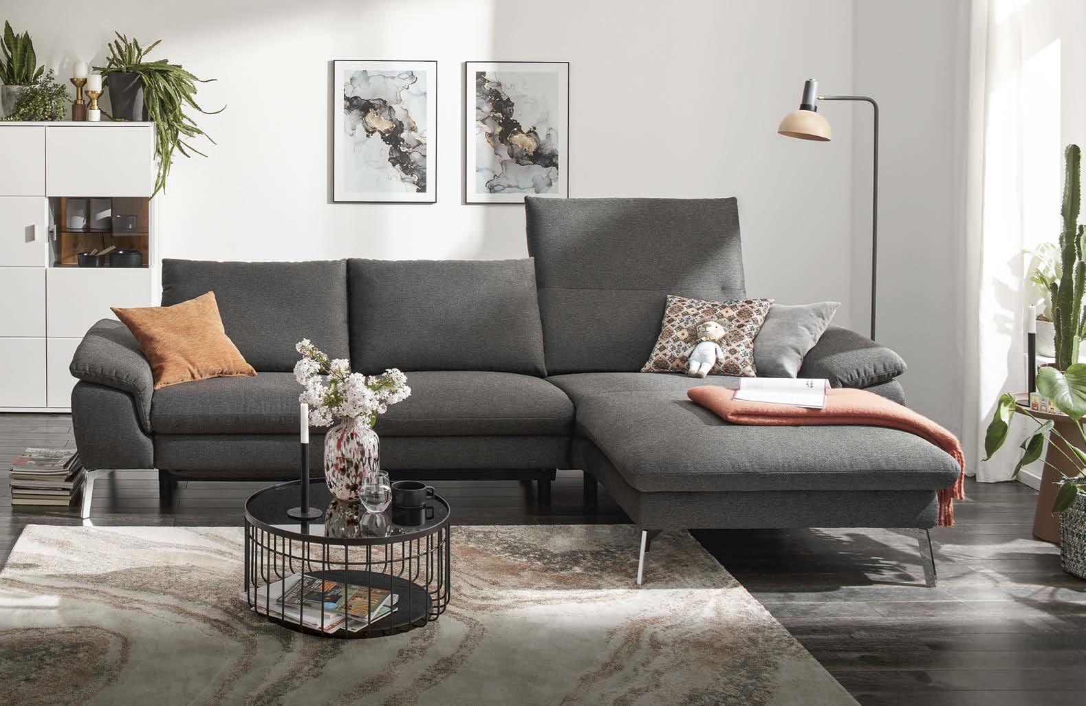Global Gotera Global Gotera Polsterecke 2298.-* 1 ** Deine 5-Jahres-Möbelgarantie (EMV-Möbelgarantie) erhältst Du durch eine 3-jährige Anschluss-Garantie, die lückenlos an Deine gesetzliche 2-jährige Gewährleistung anschließt. Art und Umfang dieser Garantie gemäß Garantiebedingungen unter www.global-moebel.de/Garantie. *Alle Preise sind Abholpreise in € inkl. MwSt.; ohne Lieferung und Montage; ohne Deko. Preise und Produkte sind gültig bis 31.01.2023. Die aktuellen Preise findest Du unter www.global-moebel.de auf der jeweiligen Modellseite oder durch scannen des Codes.8 221070-008-A4C 221070-009-A4C 9 Hey, ich bin die Neue: Global Gotera. ↘ Wenn Du Dir schon immer jemand zum Anlehnen beim Fernsehen gewünscht hast. Aus dem Polsterprogramm Global Gotera, Polsterecke in Stoff Twice dark grey, 100% Polyester, Armlehne 3, Sitzpolsterung Tonnentaschenfederkern, Füße Metall chrom glänzend, inkl. hochstellbarer Rückenlehnen, bestehend aus: 2,5 Sitzer mit Armlehne links und Longchair mit Armlehne rechts, BHT ca. 297x86(111)x161 cm, 2298.-* Scannen des Codes. Du möchstest Dein Sofa mit mehr Funktionen ausstatten? Dann schau doch mal auf die Folgeseite