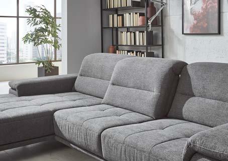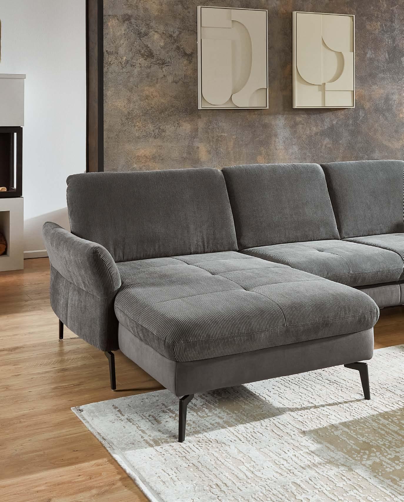Canapé Gr. X mit Armteil links und 3-Sitzer mit Armteil rechts, Chenilleflachgewebe anthrazit (100% Polyester), Rücken in Möbelstoff bezogen, Metallfuß schwarz, inkl. 3x Kopfteilverstellung, B/H/T ca. 193/107/317 cm. Ohne Nierenkissen.