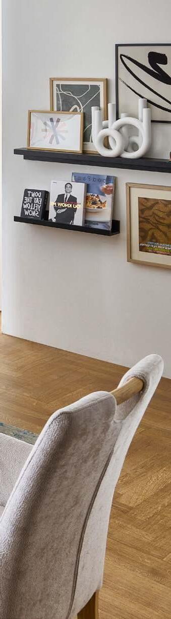 01 NATURA HOME Belfast Esstisch, Tischplatte in Eiche massiv, legno geölt, 3cm stark mit Schweizer Kante, Astlöcher und Risse mit schwarzem Epoxidharz verfüllt, Säulenfuß mit Bodenplatte Metall schwarz, BHT ca. 220x76x100 cm, 1899.– 02 NATURA HOME Kamari Armlehnstuhl, Bezug: Flachgewebe 921-35 (100 % Recycling Polyester), Gestell: Holzfuß fest in Asteiche natur Wachseffektlack, BHT ca. 64x89x68 cm, je 699.– 03 NATURA HOME Kamari Stuhl, Bezug: Flachgewebe 921-35 (100 % Recycling Polyester), Gestell: Holzfuß fest in Asteiche natur Wachseffektlack, BHT ca. 49x89x68 cm, je 549.– 04 NATURA HOME Kamari Polsterbank, Bezug: Leder Gaucho Küste 34, Holzkufe und Holzrahmen in Asteiche natur Wachseffektlack, Seitenteile klappbar, BHT ca. 208x86x69 cm, 2499.– 05 NATURA HOME Kamari Polsterbank, Bezug: Mikrofaser 785-77 (100% Polyester), Holzschemel und Holzrahmen in Asteiche natur Wachseffektlack, Seitenteile klappbar, BHT ca. 228x86x69 cm, 1999.–