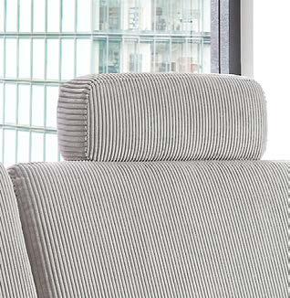 Couchecke LS23 Arve 3-Sitzer mit Armteil links und Canape XL mit Armteil rechts, Rücken in Möbelstoff bezogen, Bezug: Cord grau (88% Polyester, 12% Polyamid), Füße: Metallfuß schwarz, Maße: B/H/T ca. 302/87/178 cm. Ohne Kopfstützen, Kissen und Dekoration