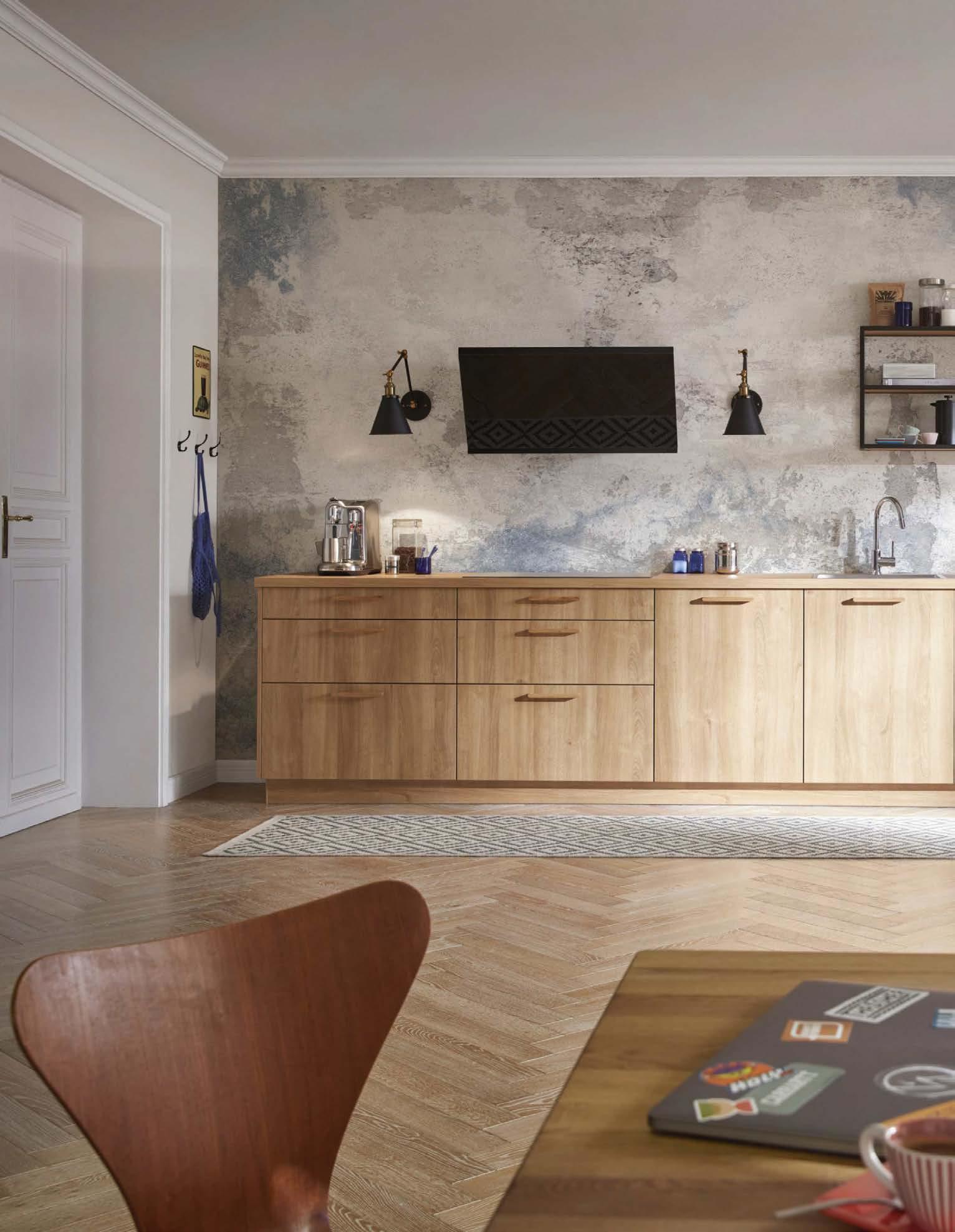 Du legst Wert auf ein großzügiges Raumgefühl? Du liebst einen ausgewogenen Mix aus Materialien? Die Küche Global 51.220 (hier in warmer Aurora-Eiche-Nachbildung) verbindet Ästhetik und Funktion. Die Arbeitsplatte, Fronten und Griffe mit ihrer natürlich anmutenden Holzoptik kontrastieren perfekt mit dem Rauputz und dem Industrial-Charme der Frame Racks. Alles ist präsent und griffbereit. Die offenen Frame-Racks mit onyxschwarzem Alugestell bieten genug Stauraum für Kaffee, Gewürze, Kochbücher & Co. Too much? Es geht auch ohne Griffe. Noch minimalistischer wirkt diese Küche in der Push-to-open-Variante.