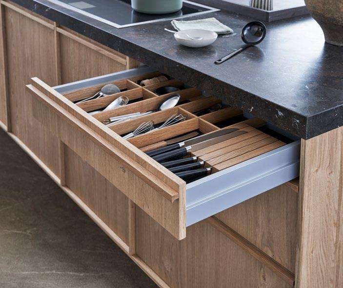 de succès, cette collection se démarque par une propre façade aux chants droits. Pour les corps de 80 cm, elle est placée directement sous le plan de travail. La nouvelle ligne de corps 73 est également disponible dans ce contexte.