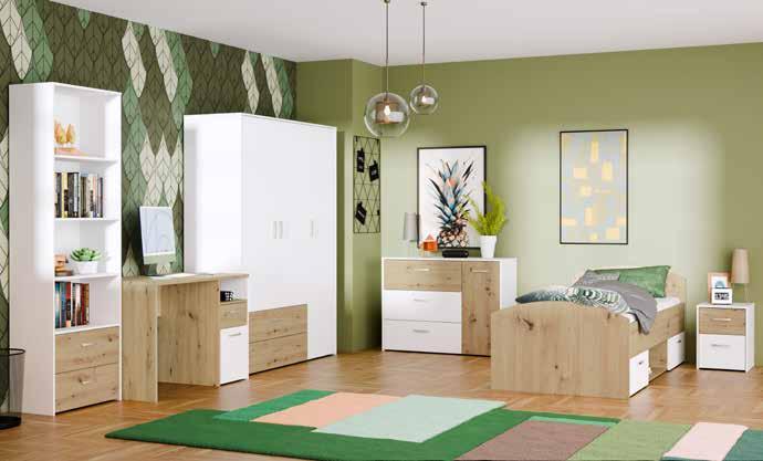 Jugendzimmer in Weiß, kombiniert mit Artisan Eiche Nachbildung, bietet viel Stauraum für diverse Gegenstände und Kleidung.