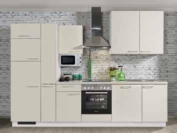 Clean, Front Magnolia matt, UV-Lack mit Anti-FingerprintBeschichtung, inkl. PKM Elektrogeräten und Edelstahlspüle, ca. 390 cm. Geräte Abbildung ähnlich.