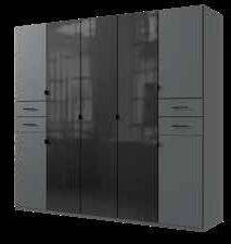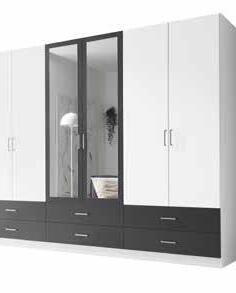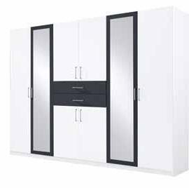 Drehtürenschrank in Weiß/ Graphit, 6-türig, B/H/T ca. 272x211x55 cm. #2050